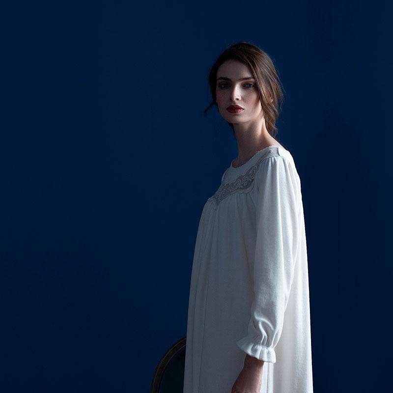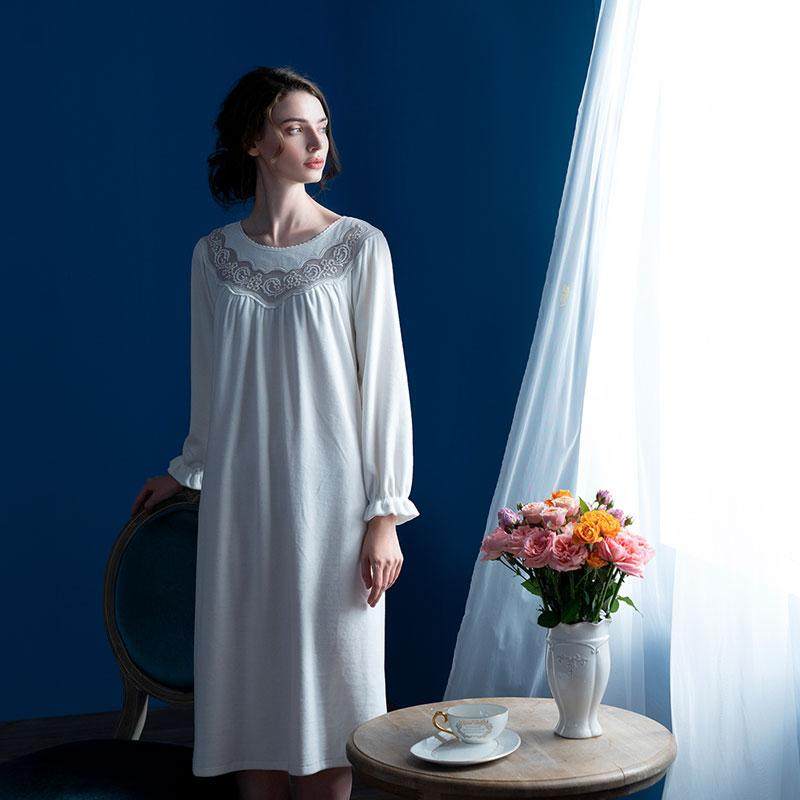 带胸垫纯棉哺乳产后睡裙待产裙 春秋季 芬腾可安长款 月子服睡衣女款