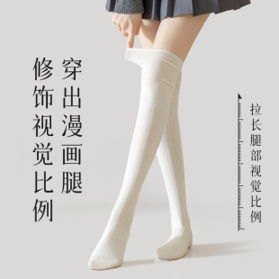 长筒靴袜子女搭配靴子小腿堆堆过膝袜夏季 内搭白色大腿长筒袜 薄款