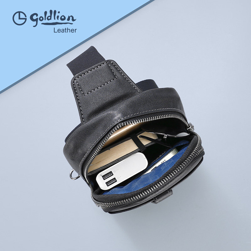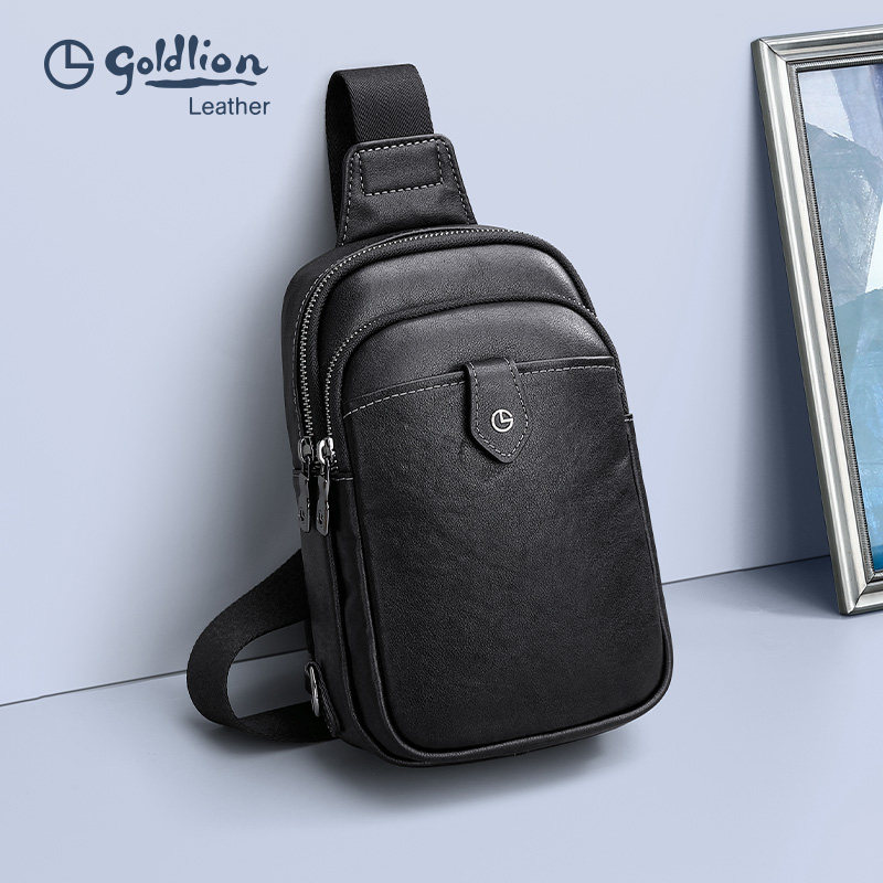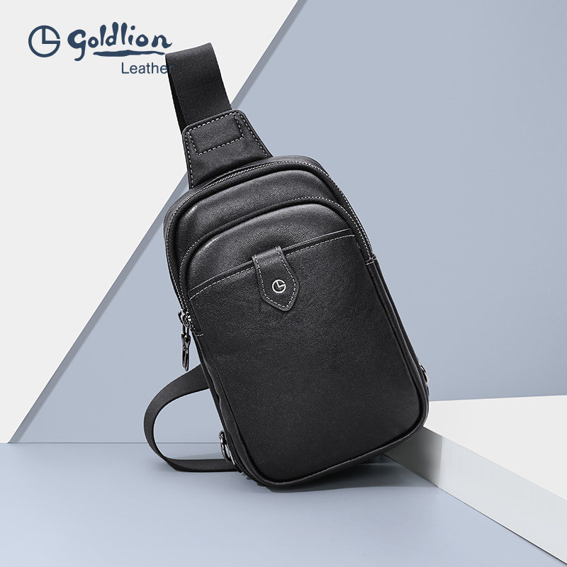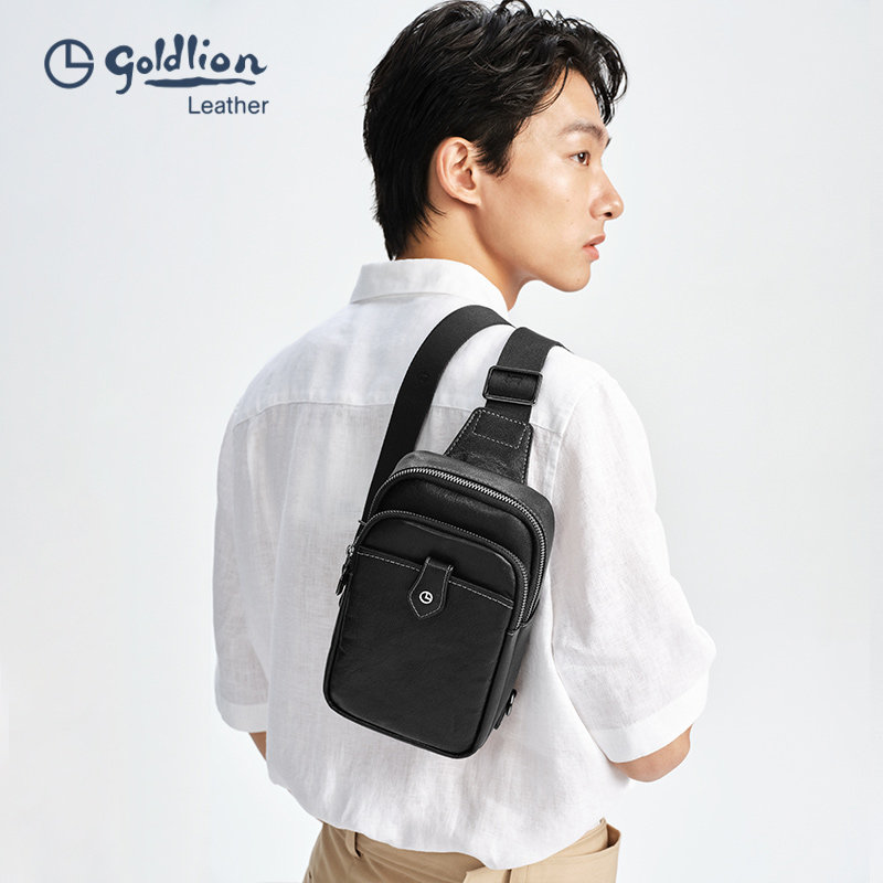 金利来男包新款 胸包真皮简约斜挎包商务休闲大容量牛皮胸前包 男士