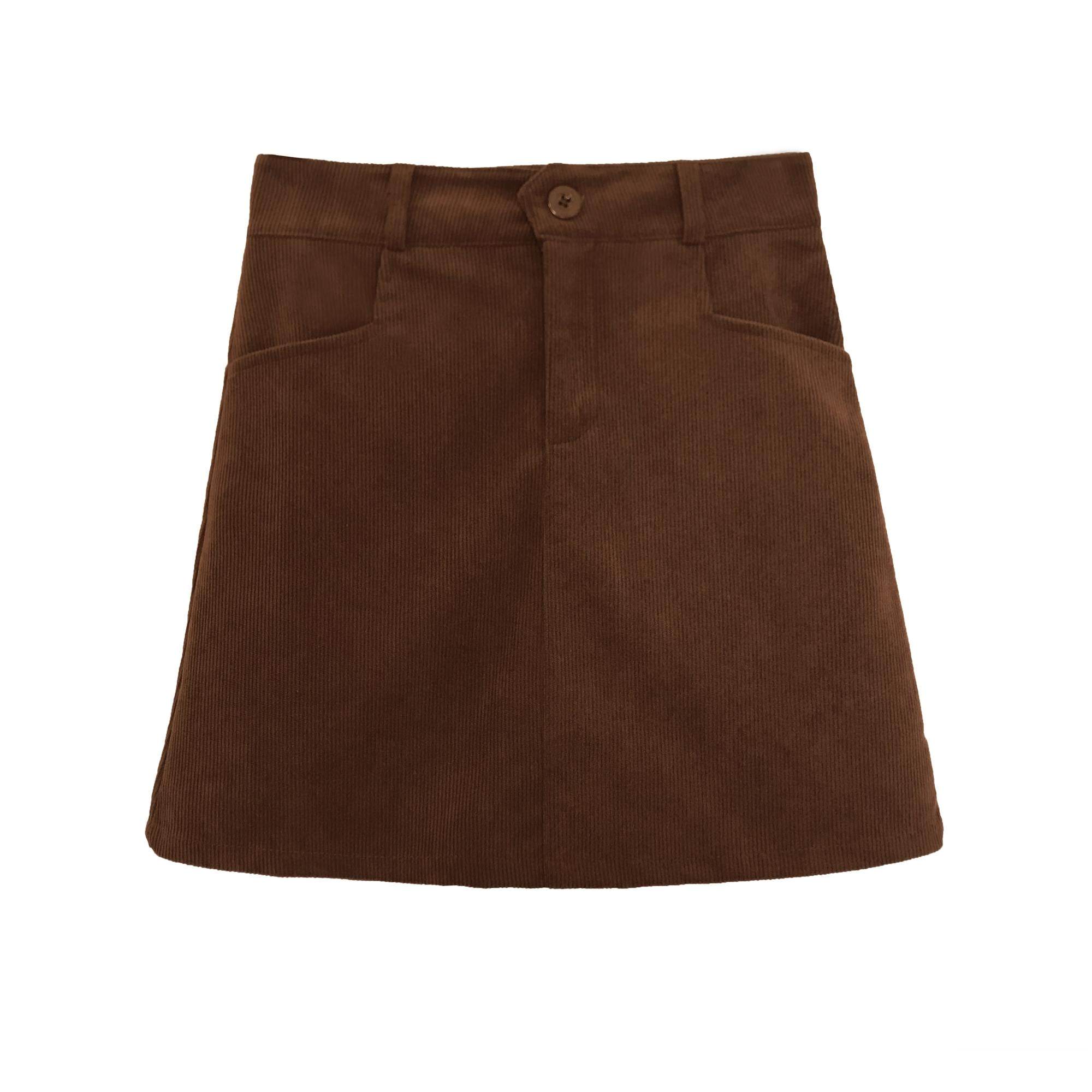 短裙秋冬咖色大码 复古遮胯口袋灯芯绒半身裙 高腰显瘦a字裙胖m韩版
