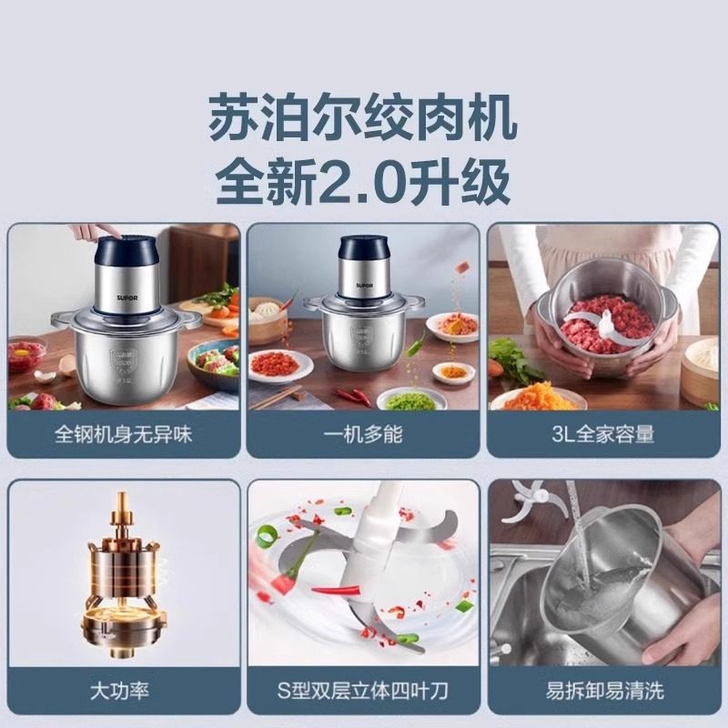 利仁绞肉机家用佐料机全自动多功能不锈钢料理机打辅食碎菜绞馅机