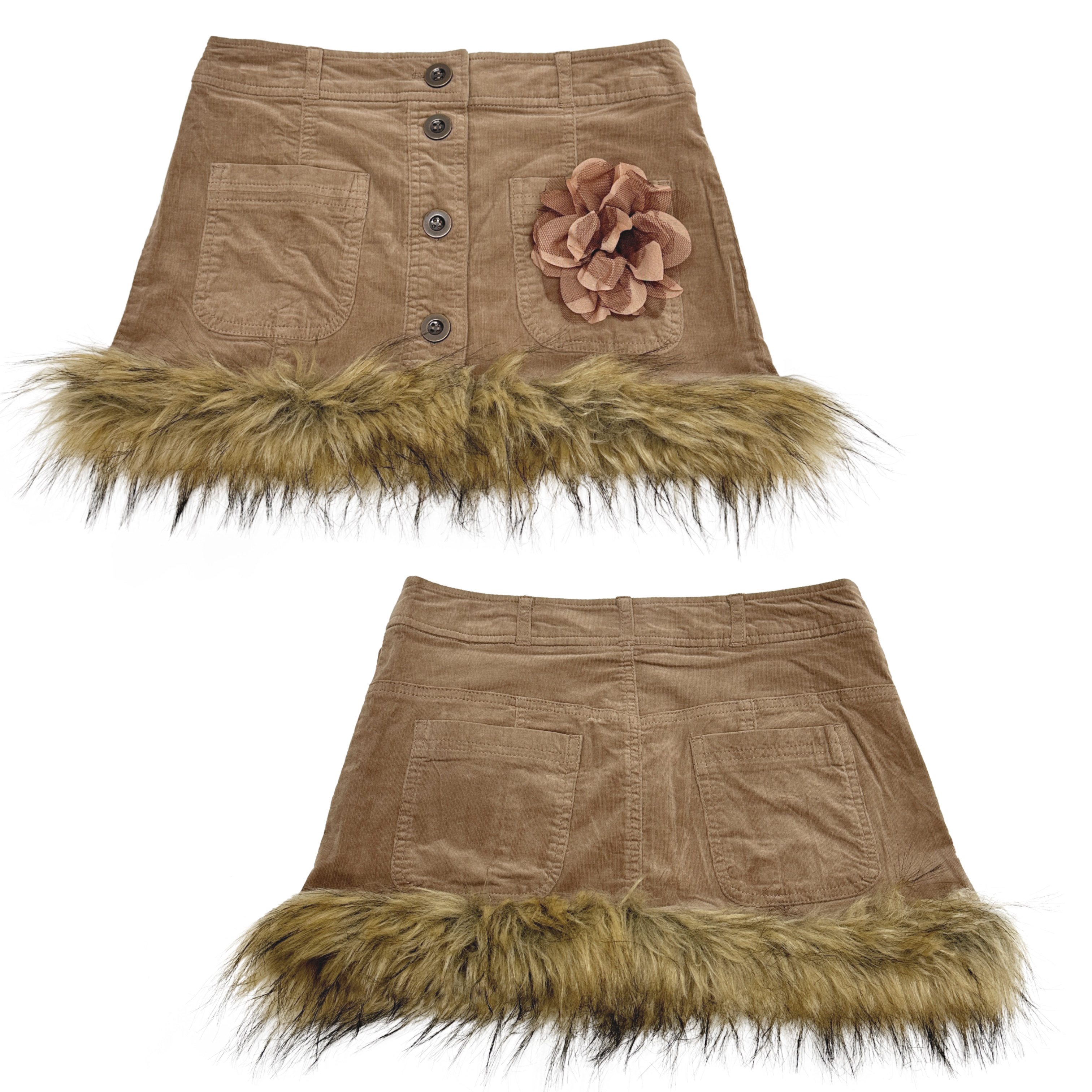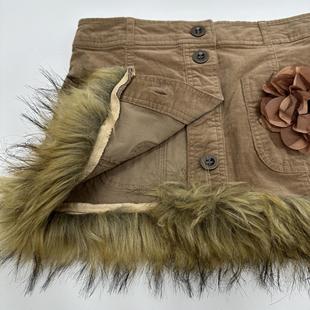 REMAKE日系早古复古咖啡色纯色低腰棉弹灯芯绒毛毛A字半身裙短裙