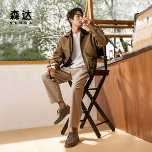 张凌赫推荐 牛皮软底勃肯休闲皮鞋 百丽男士 板鞋 加绒A1864AM5 工装