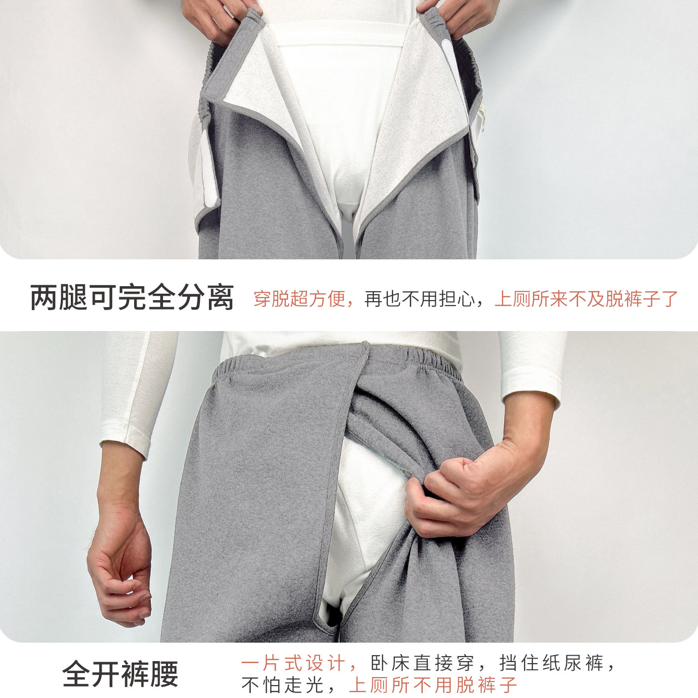 高腰直筒散腿加绒中老年珊瑚绒家居裤 加厚法兰绒睡裤 男冬宽松大码