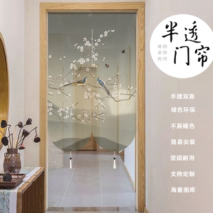 新中式 山水复古禅意门帘隔断帘家用帘子卧室免打孔布透古风风水帘