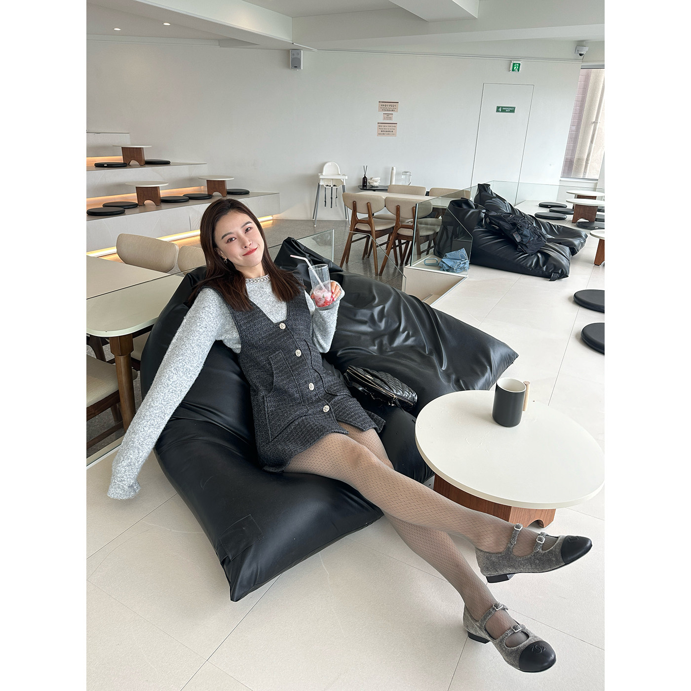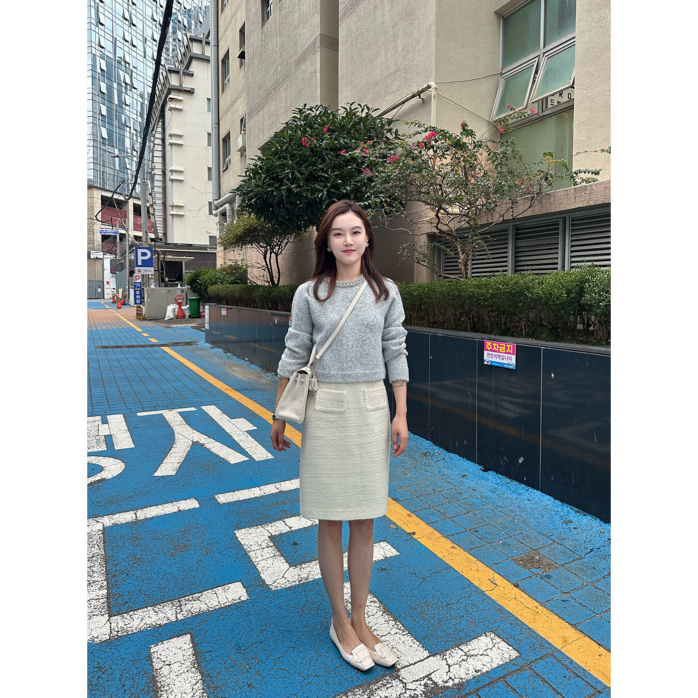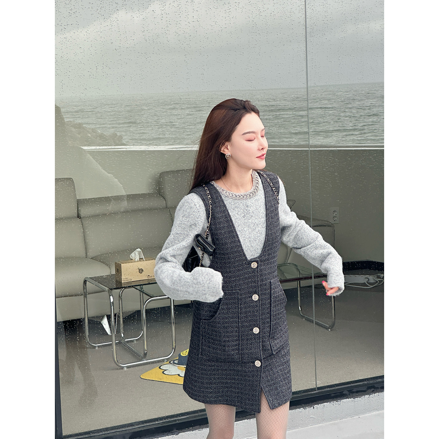 DUO智仙生 精致金属领饰灰白羊毛套头针织毛衣 黑标
