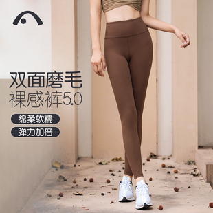 女冬高腰弹力显瘦百搭休闲裤 瑜伽裤 咖色加绒鲨鱼皮打底裤 Yukiss