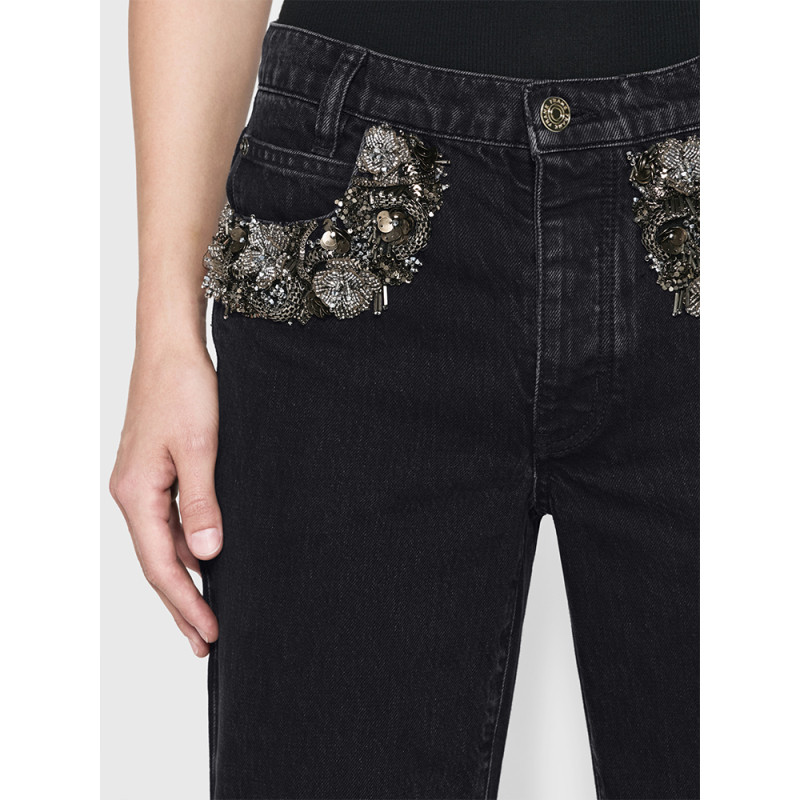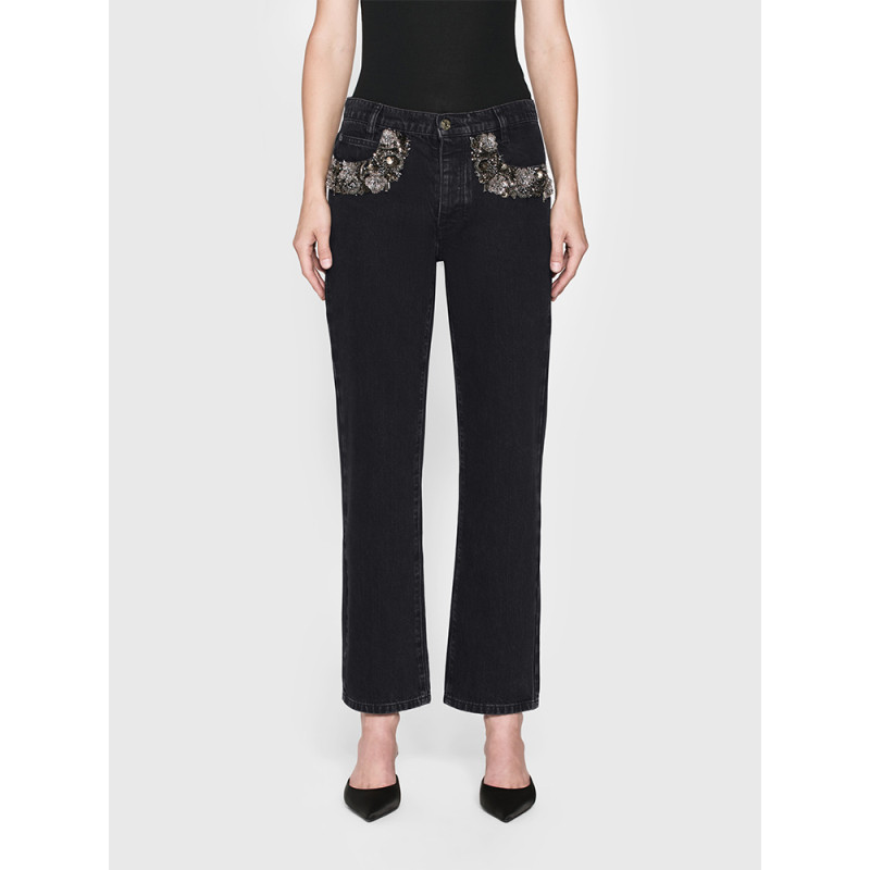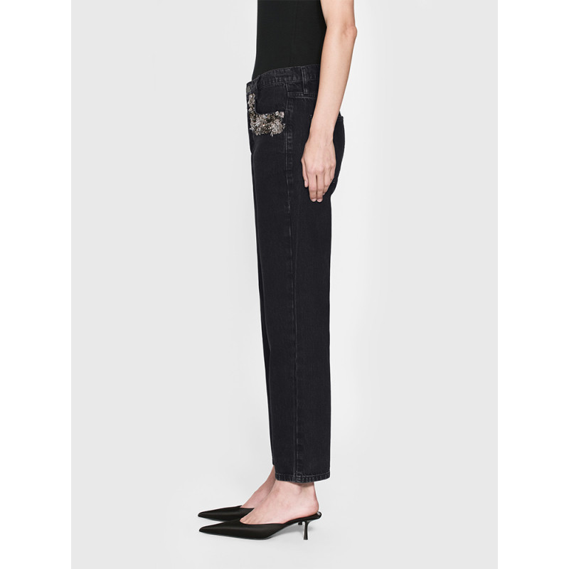 HANG THE FRAME女士黑色钉珠装 饰宽松直筒牛仔裤