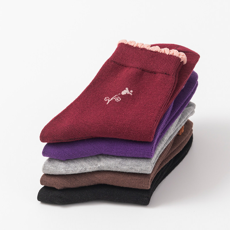 韩版 防臭吸汗休闲竖条纹堆堆月子袜纯糖果色 女士中筒长袜子春秋款