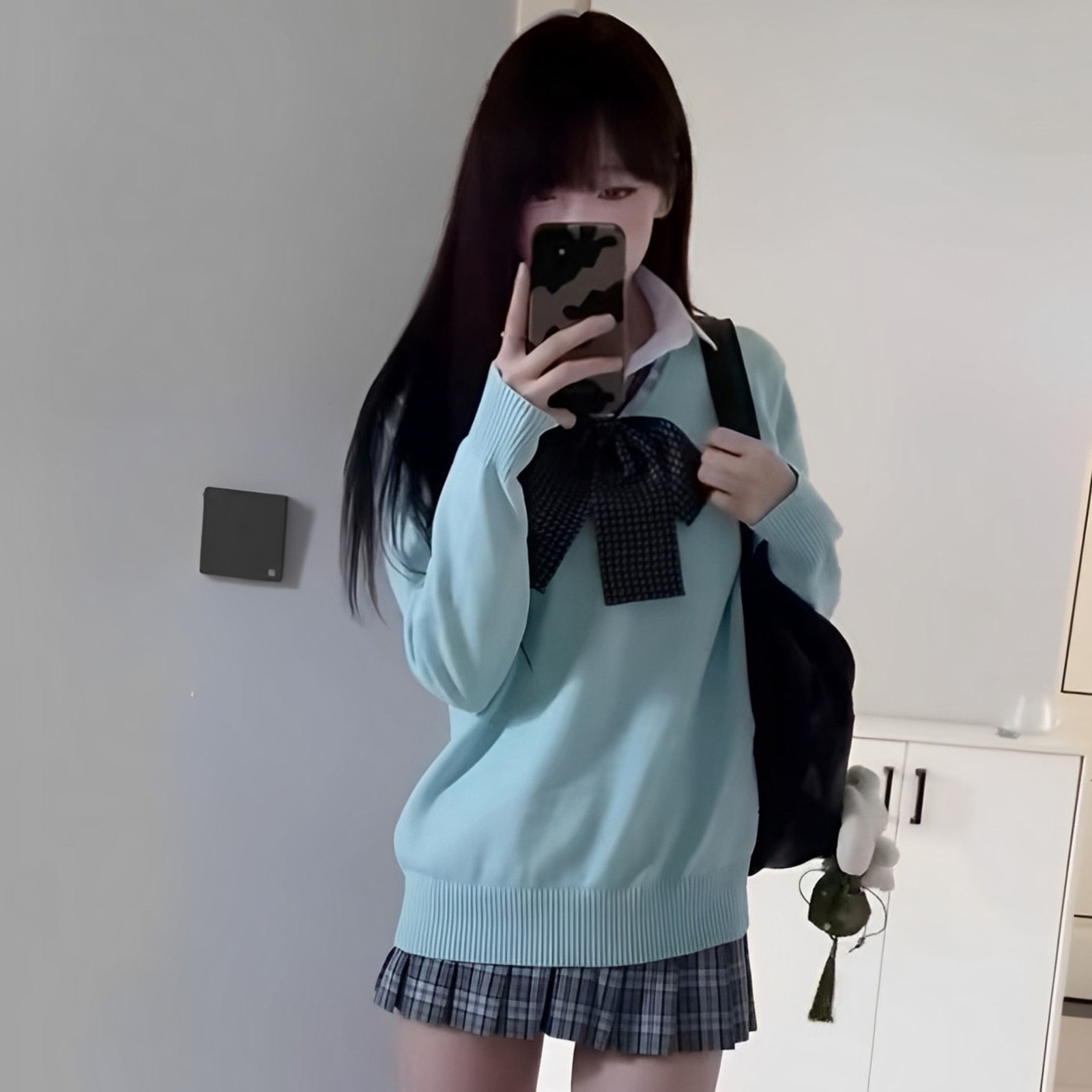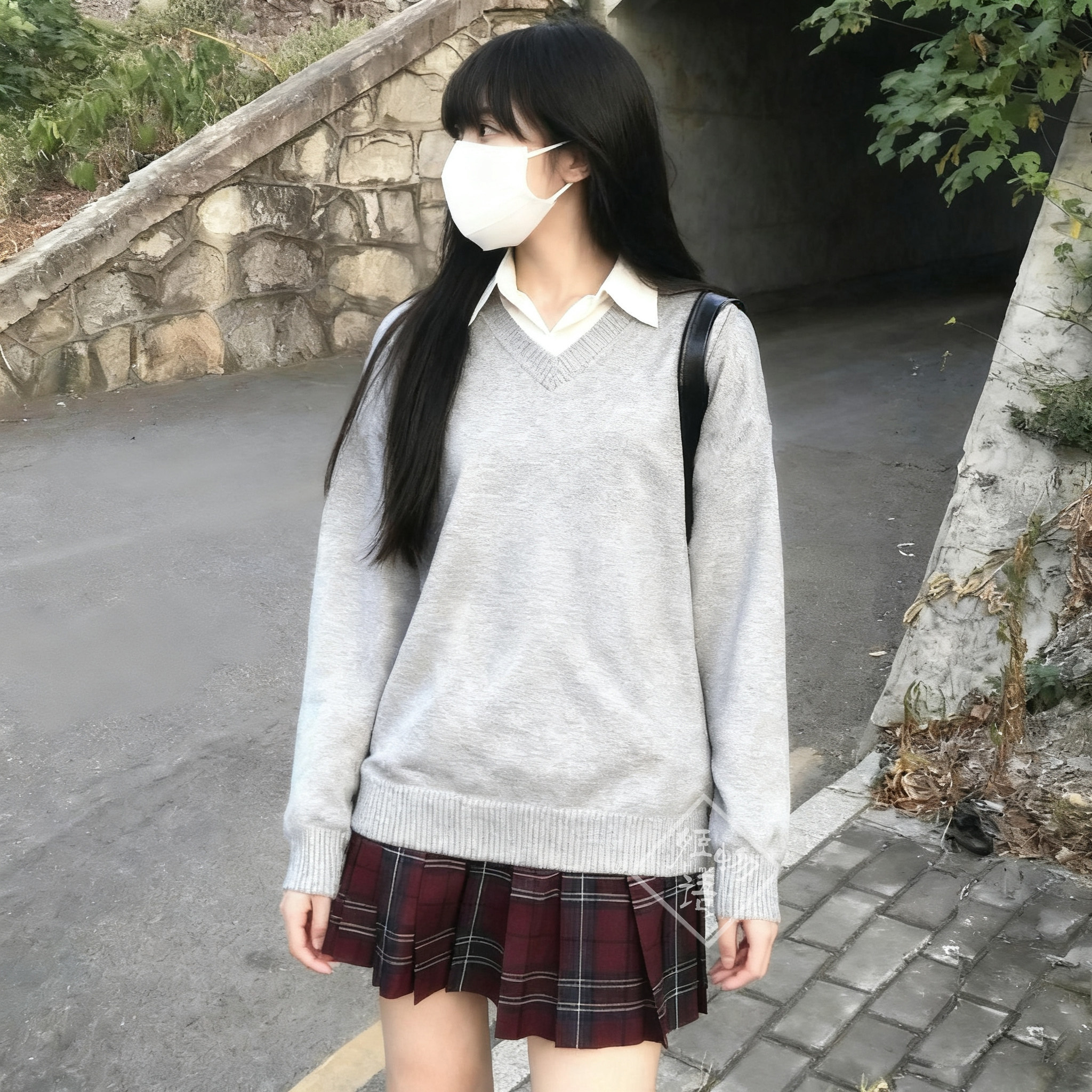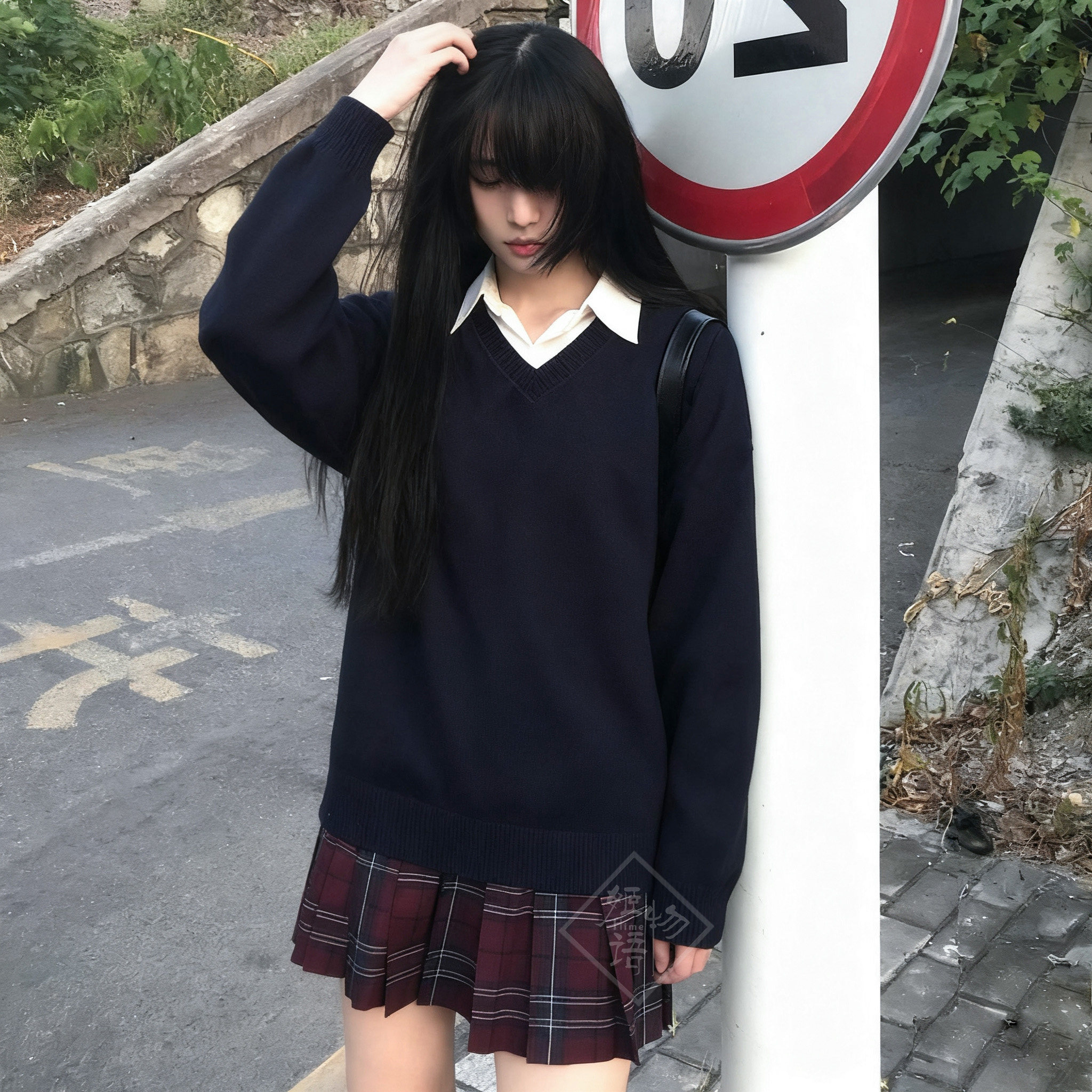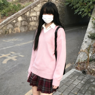 姬物语秋冬JK毛衣纯棉叠穿针织衫 上衣假两件 校供百搭日系V领长袖