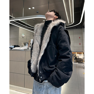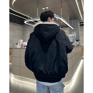 廓形棉袄 短款 PU皮假两件连帽夹克棉服男女冬季 加厚高级感保暖美式