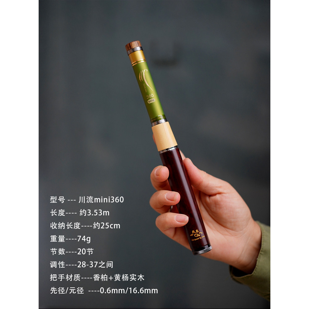 小物竿溪流竿手竿便携旅行 天展竿 超短节25cm 川流鱼竿mini360