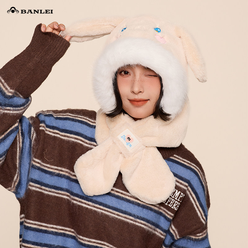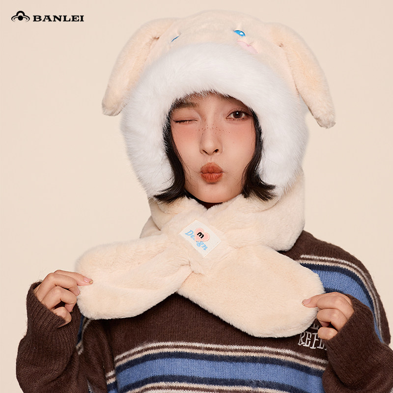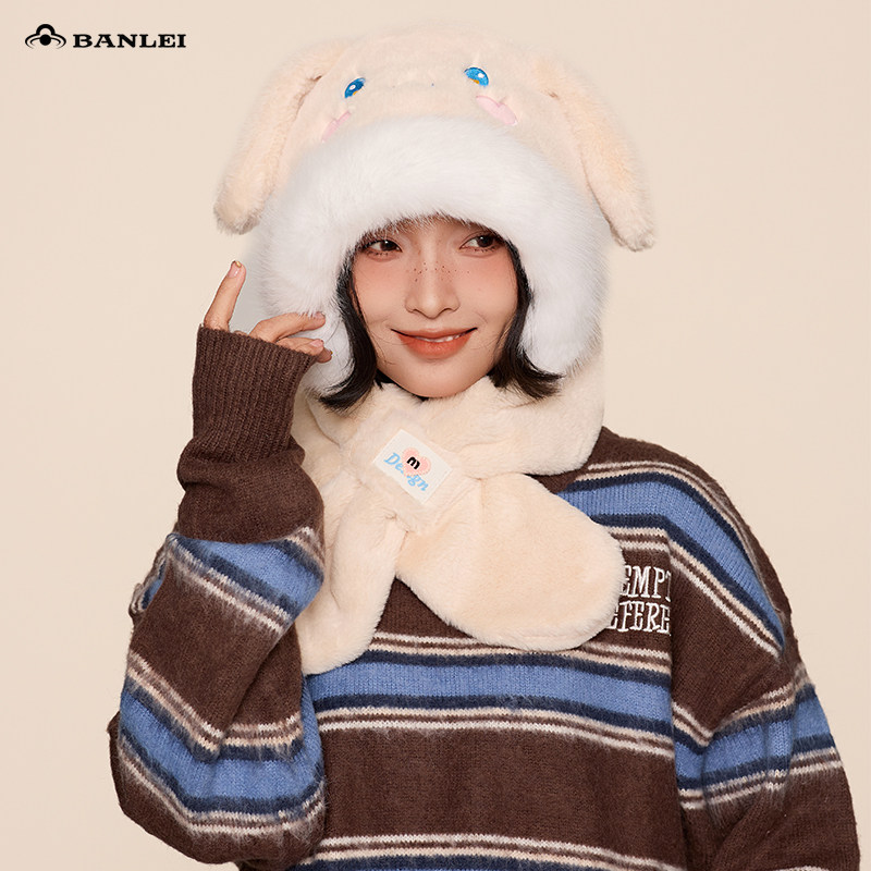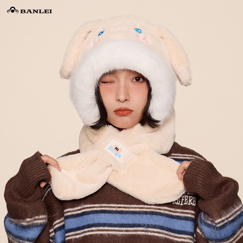 冬天帽子围巾一体女冬季 加厚保暖护耳帽防寒显脸小防风可爱狐狸帽