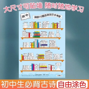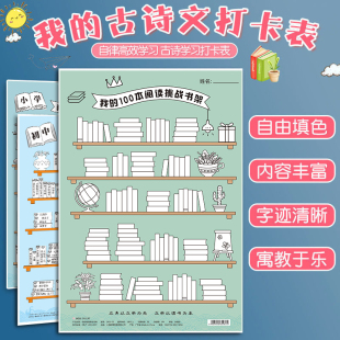 我 古诗打卡小书架涂色地图计划表艾宾浩斯背诵海报墙贴家用 100本阅读挑战书架古诗打卡挂图记录表129首我