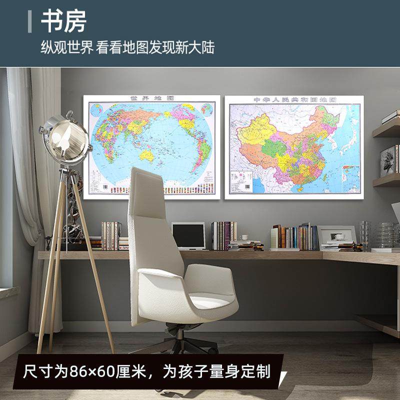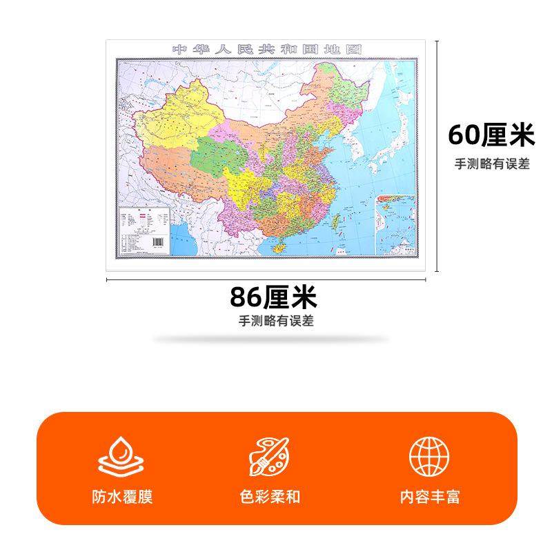 学生专用行政区划地图初中生办公室客厅墙面墙贴 山东省地图出版 覆膜防水可标记装 中华人民共和国地图 社 饰墙贴通用版 中国地图