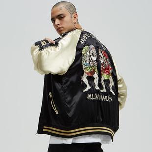 龍頂 战线skajan浮世绘刺绣夹克热血高校凤仙铃兰棒球服男女 武装
