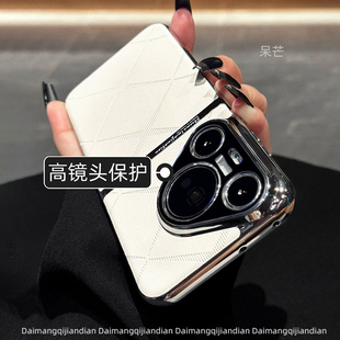 高级感p 防摔套高级感男女p60pro情侣小众p80简约轻奢硬壳超薄夏季 呆芒新款 皮质适用华为pura70手机壳p70pro
