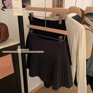 加厚高腰设计显瘦宽松半身裙裤 新款 2025年秋冬季 灰色百搭毛呢裙裤