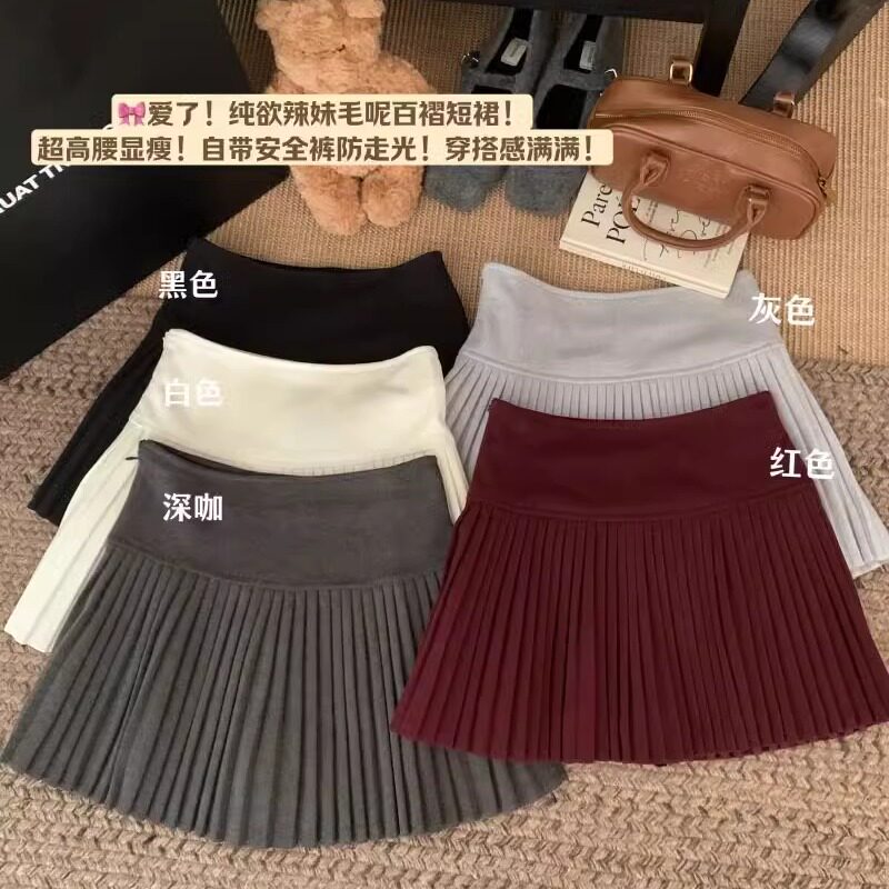 灰色毛呢半身裙女2025秋冬款 高腰显瘦A字短裙宽松小个子包臀裙子