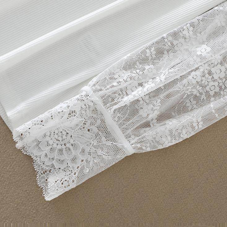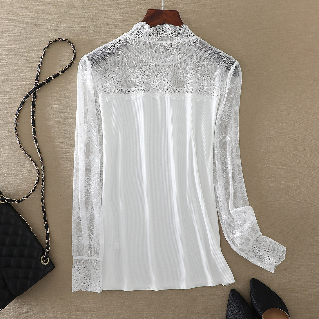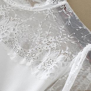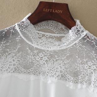 白色网纱拼接半高领打底衫 内搭长袖 气质女装 性感蕾丝上衣春秋新款