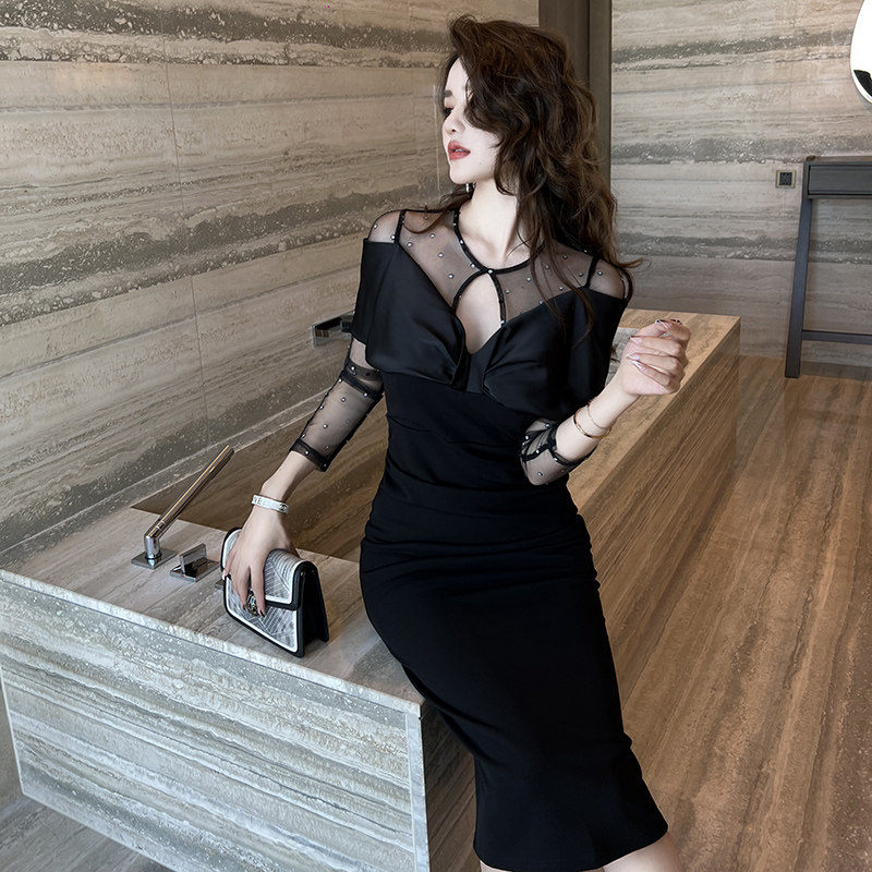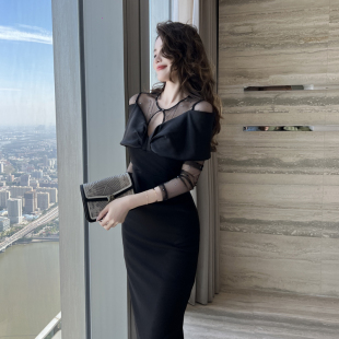 气质中长款 修身 裙子女神范黑色连衣裙高级感 今年流行爆款 2024新款