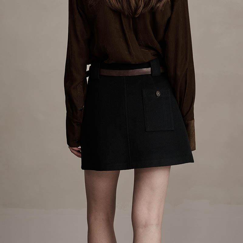 优雅简约百搭黑色A字短裙DH244M97798D 迪哈利新款 HARRY