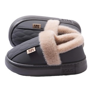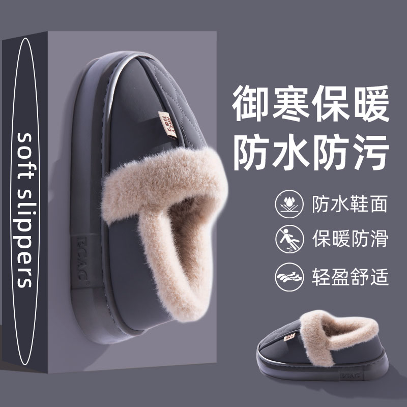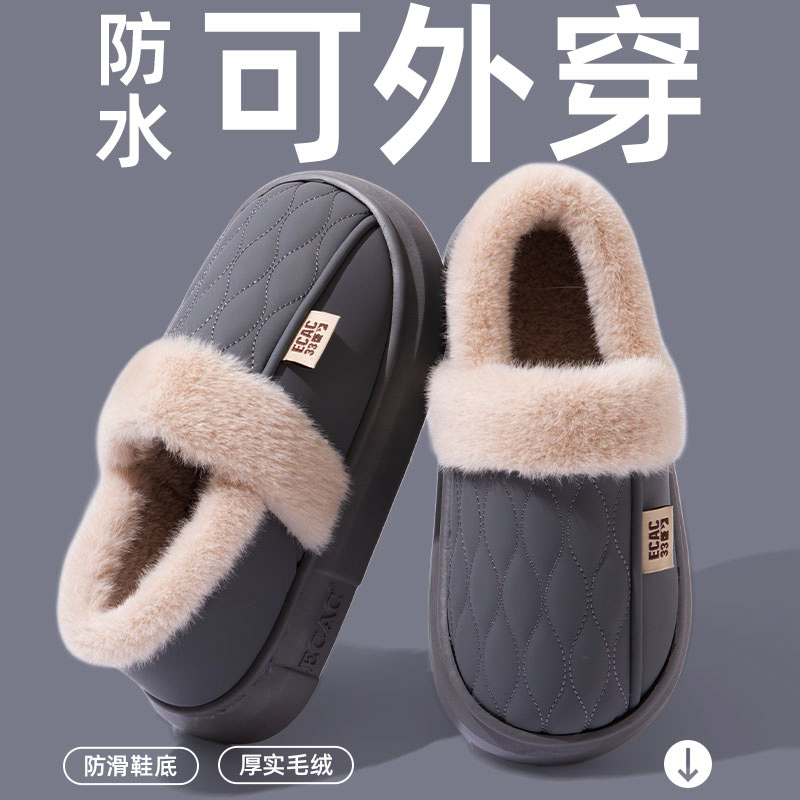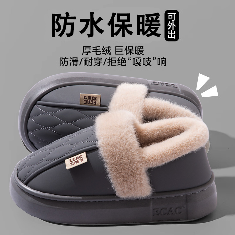 室内家居保暖加绒防滑厚底棉鞋 防水棉拖鞋 包跟2025新款 冬季 男 男款