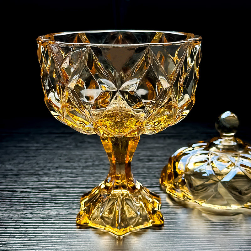 水晶玻璃碗带盖透明糖果罐高颜值水果盘容器首饰盒糖缸收纳盅器皿