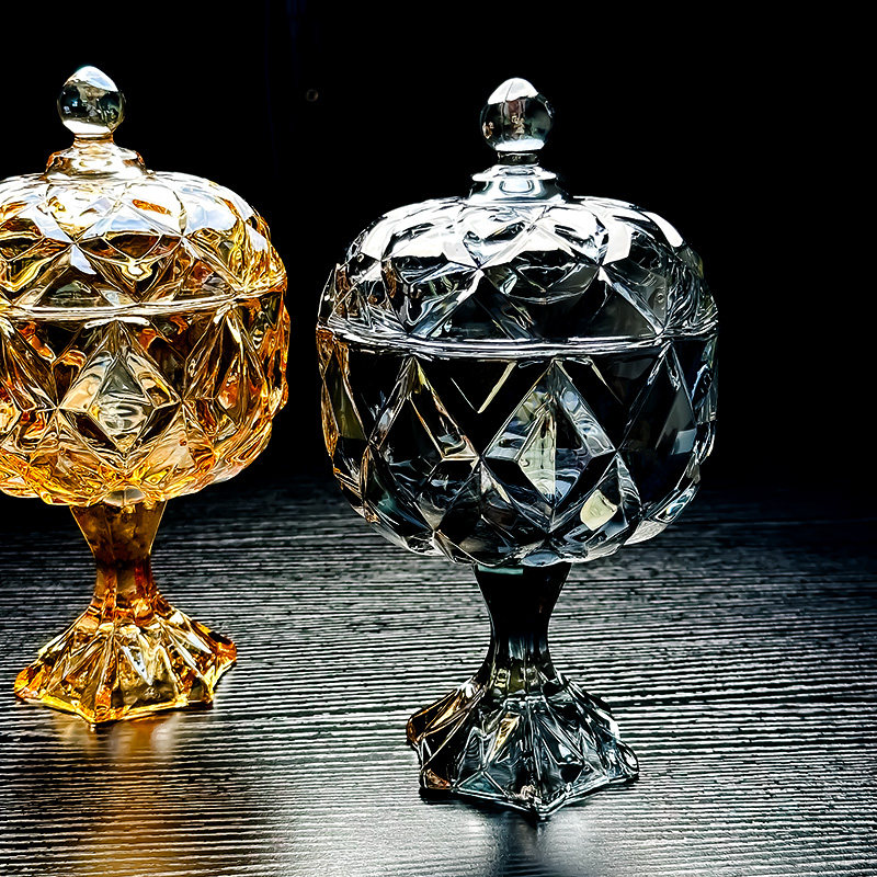 法式 轻奢水晶玻璃糖果罐精致玻璃碗透明糖缸零食首饰收纳罐高颜值