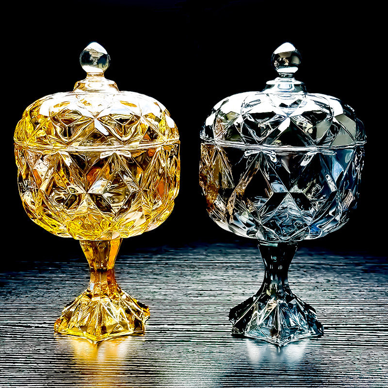 Moongril欧式 水晶玻璃糖缸罐客厅带盖碗糖果干果水果盘子茶几摆件