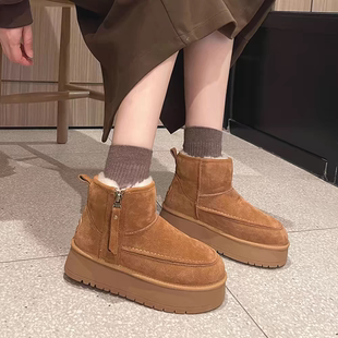 拉链加绒雪地靴加厚保暖防滑妈妈棉靴女鞋 老北京棉鞋 新款 2025冬季