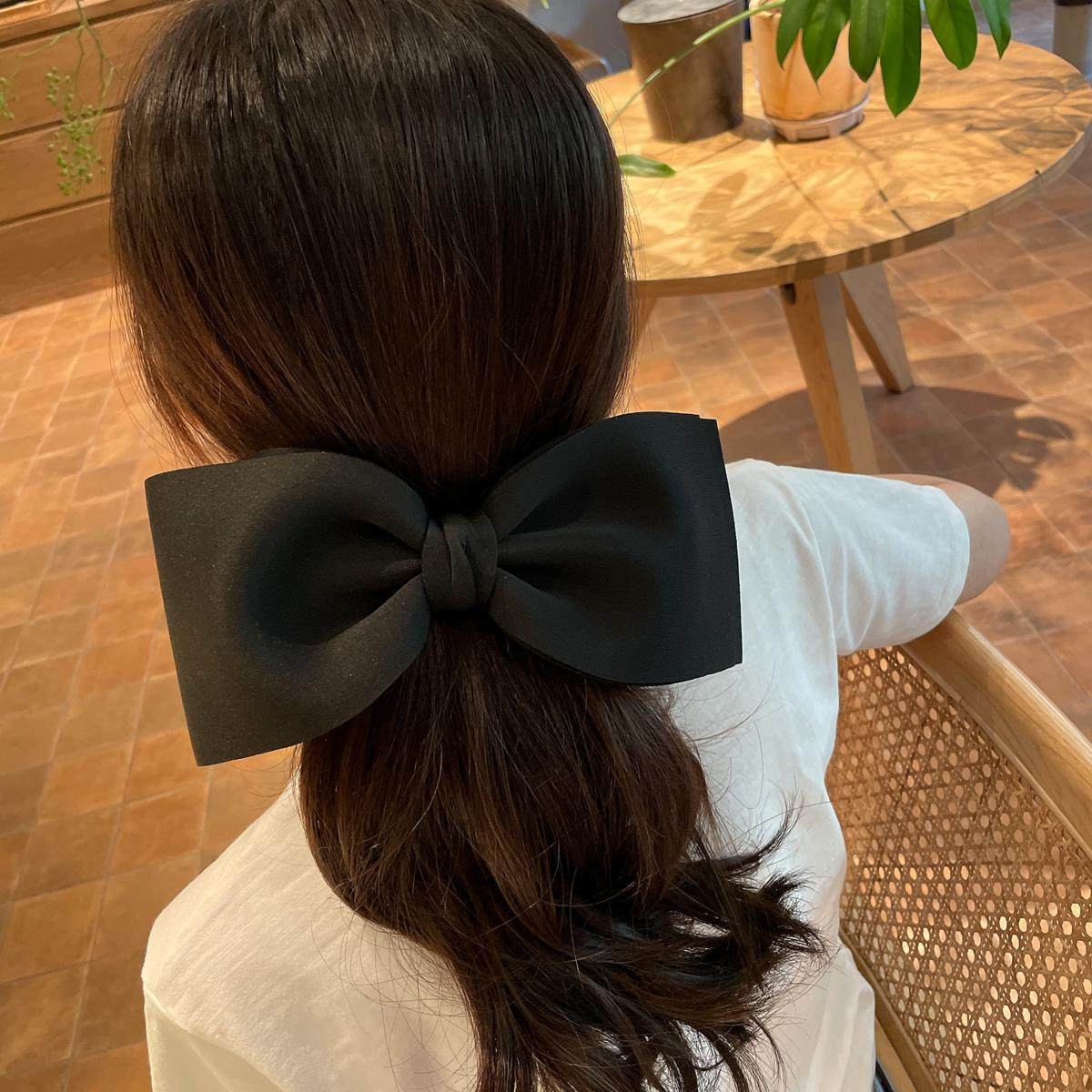 法式 发饰后脑勺头饰顶夹发卡 复古简约黑色超大蝴蝶结发夹秋冬新款