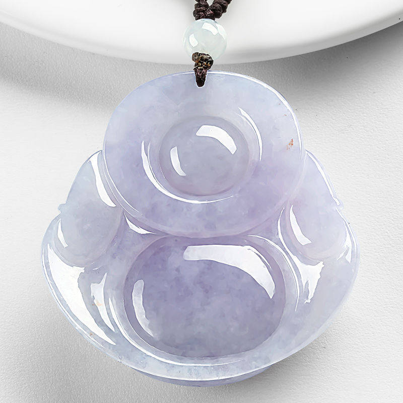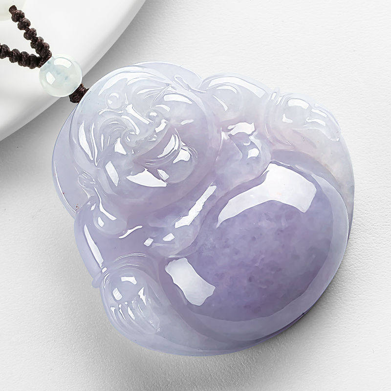 缅甸糯冰种翡翠色吊坠女款 玉佛紫罗兰玉石弥勒佛公挂件笑佛送礼品