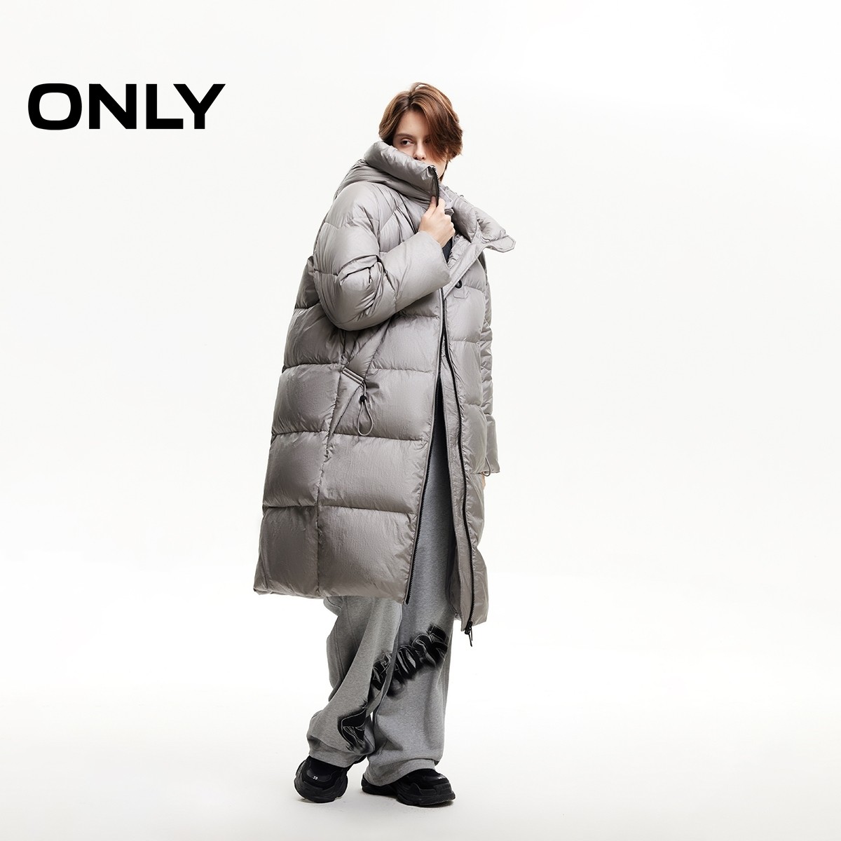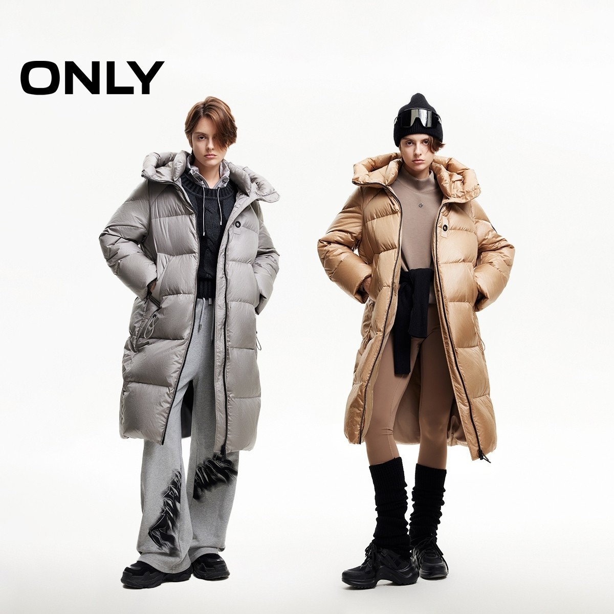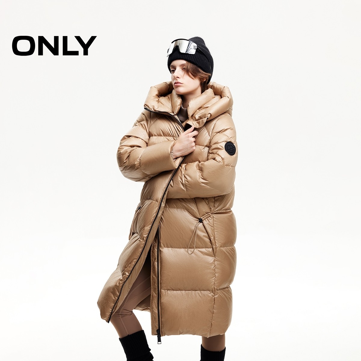 羽绒服女时尚 90白鸭绒保暖蓄热连帽长款 新款 绫致ONLY2024冬季