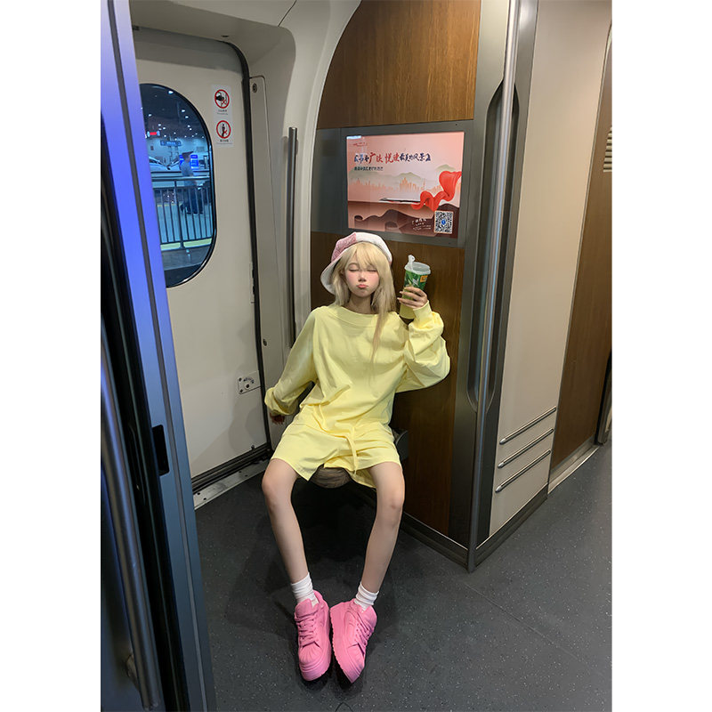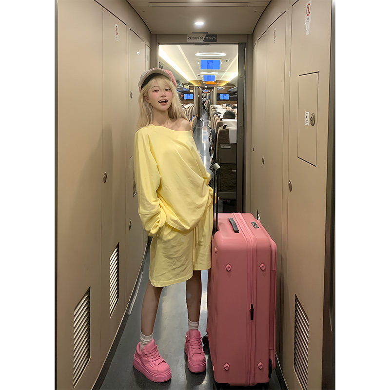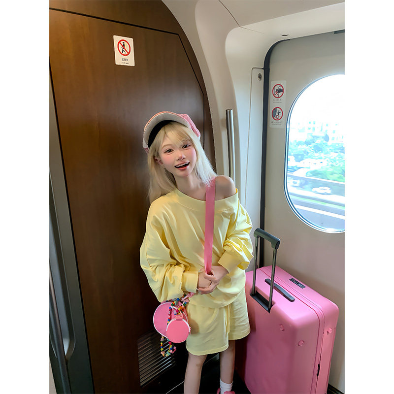 宽松休闲运动短裤 T恤男女夏季 两件套 复古慵懒简约长袖 JMJ美式
