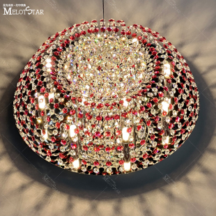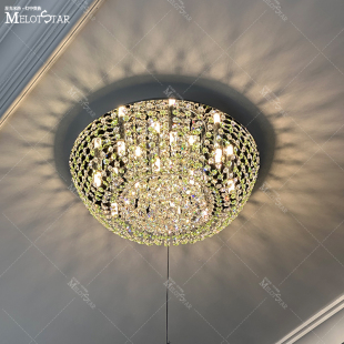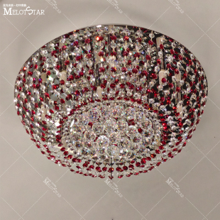 吸顶灯简约客厅过道高级感圆形房间灯 红色水晶法式 2026新款 法式