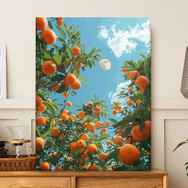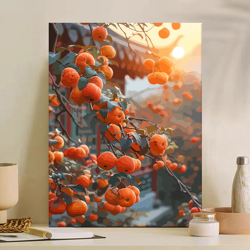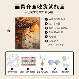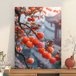 饰画 涂色手绘丙烯油彩装 新中式 柿柿如意数字油画diy填充2025新款