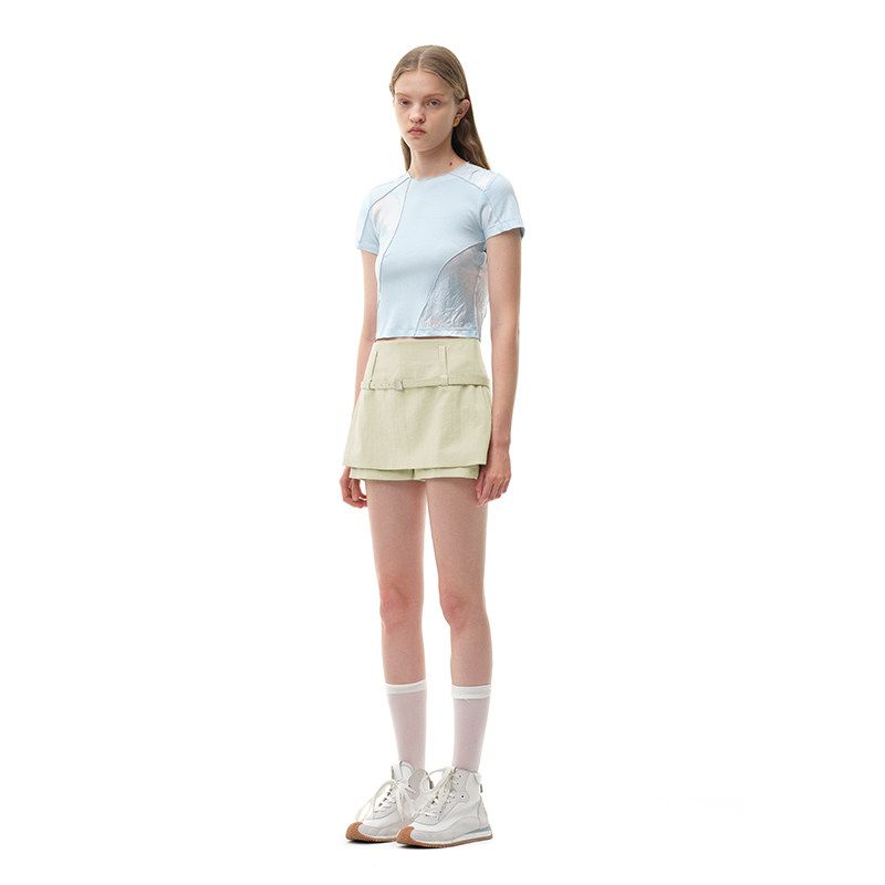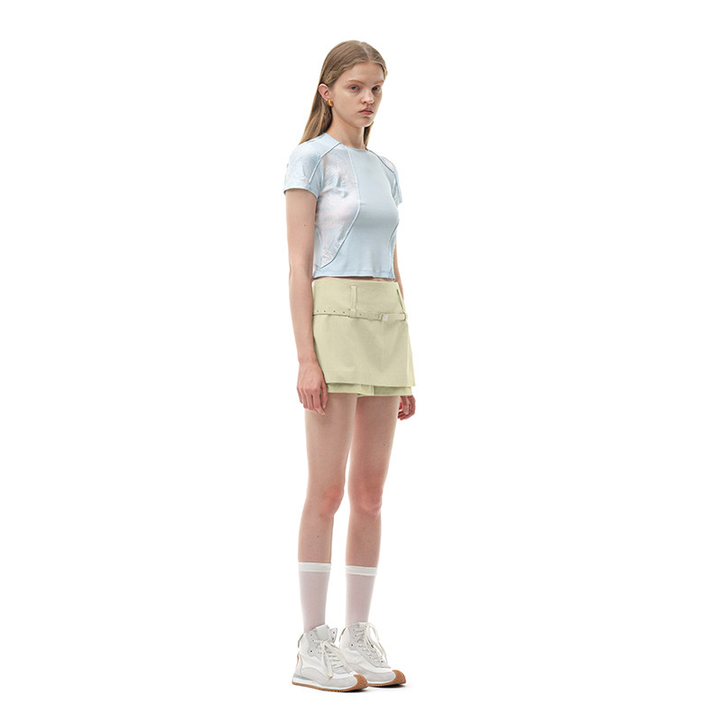饰A字裙双层超短裙裤 N·MORE设计师品牌 米杏灰腰带装