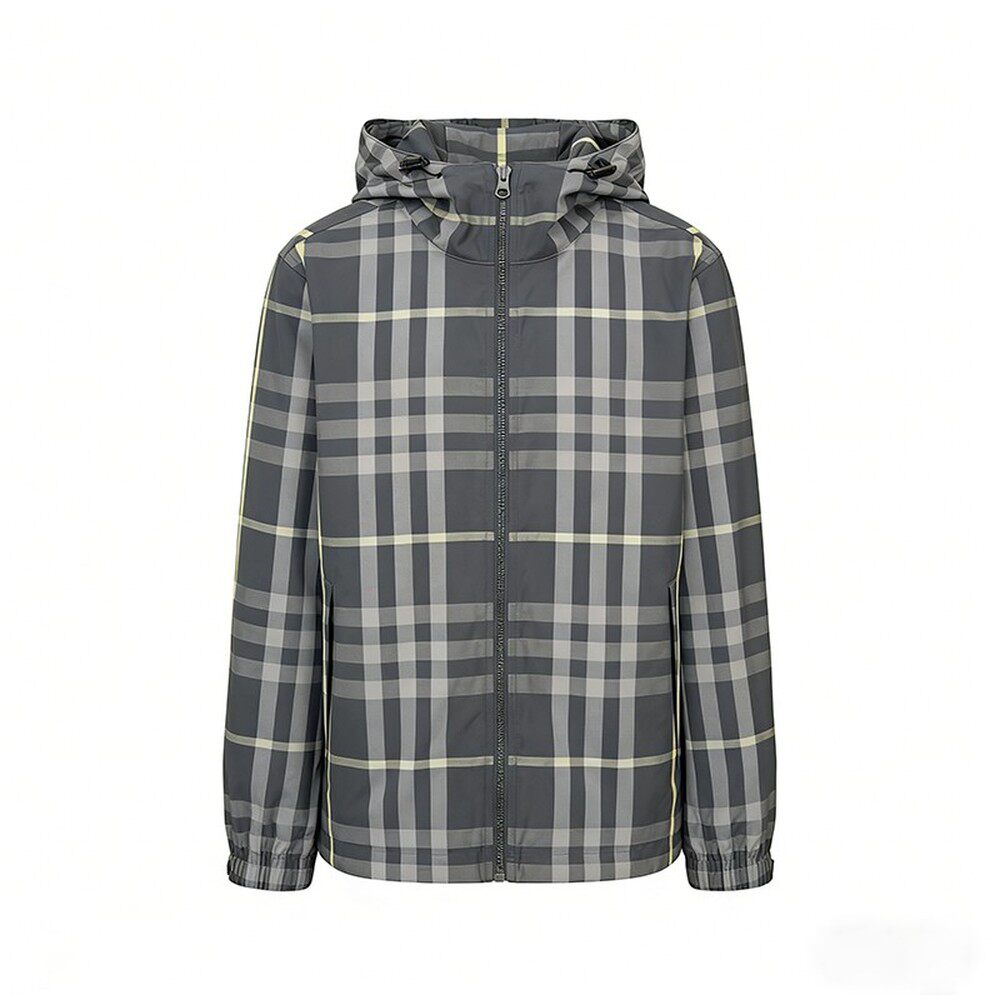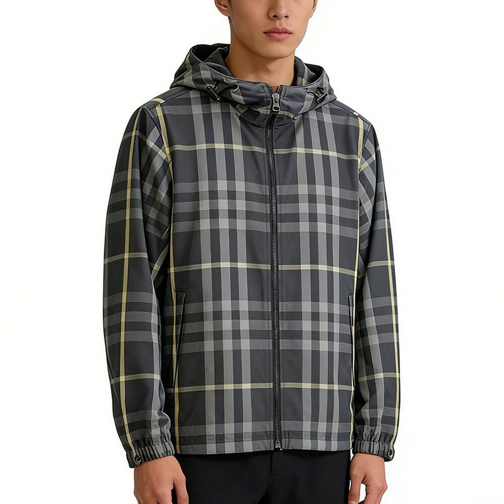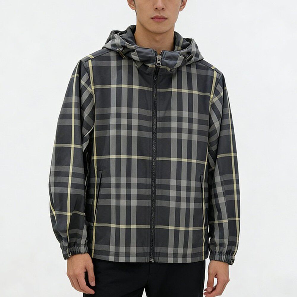 黑色涤纶格纹拉链连帽长袖 男士 夹克 博柏利 自营欧洲直邮Burberry