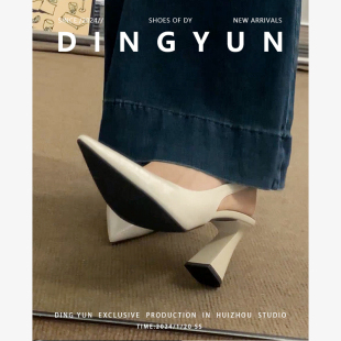 包头凉鞋 羊皮版 女尖头法式 绝美粗跟半拖鞋 dingyun丁允白色高跟鞋