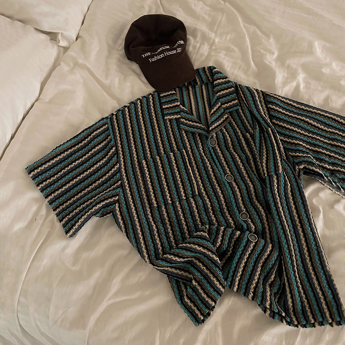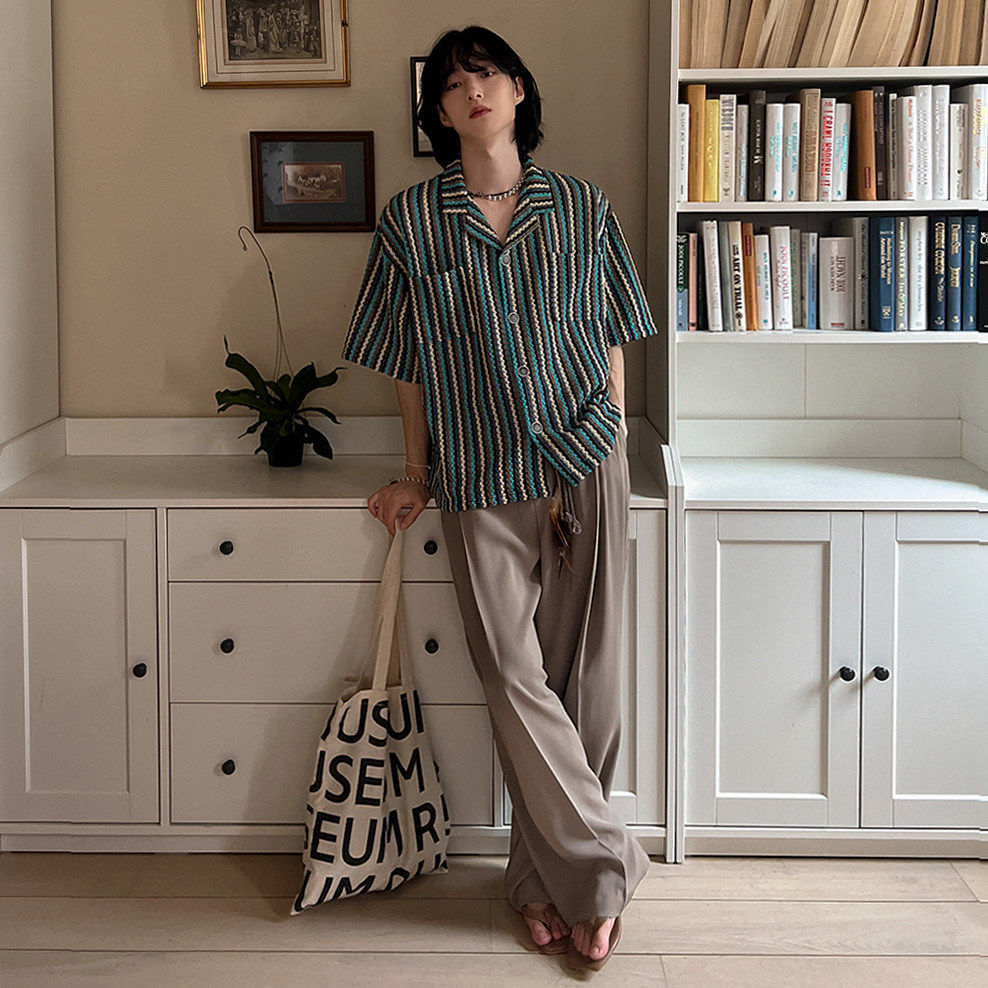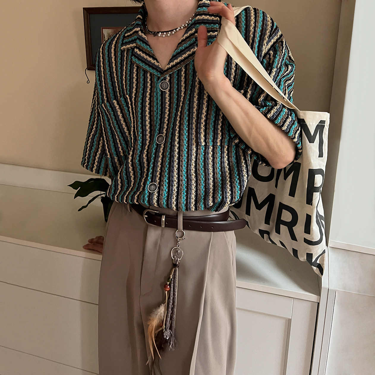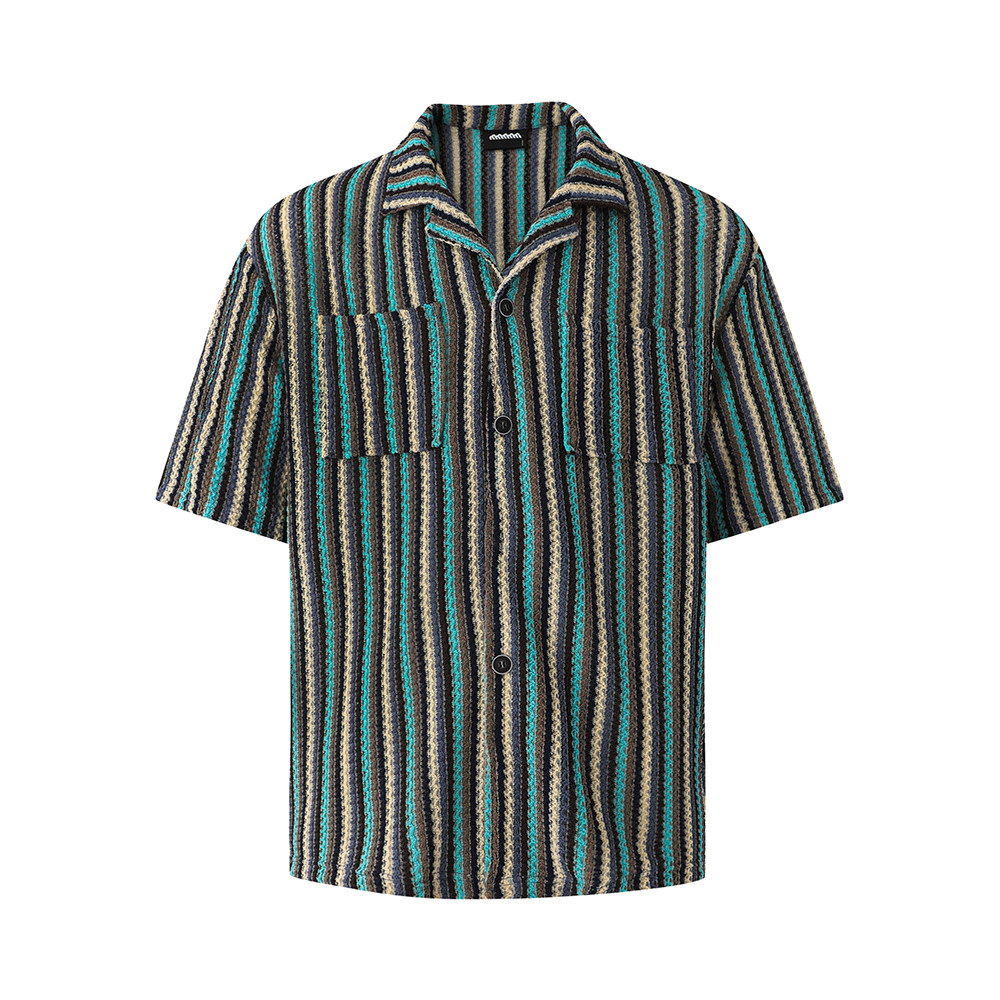 宽松休闲古巴领衬衣韩系通勤穿搭 男夏季 MRCYC设计感条纹短袖 衬衫