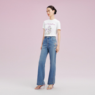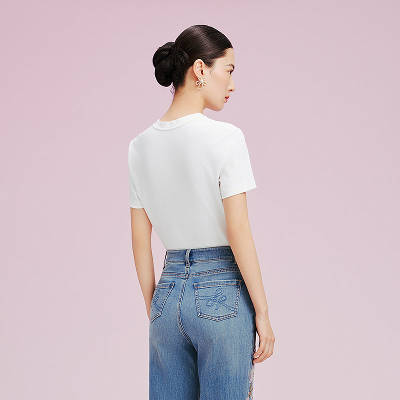 通勤蝴蝶兰T恤女 短袖 Koradior拉珂蒂2025夏纯棉百搭简约时尚