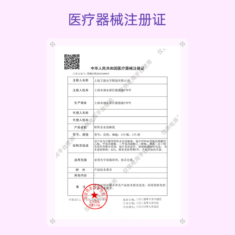 卫康亮明隐形近视眼镜年抛高度数透明隐型眼镜旗舰官网1片装