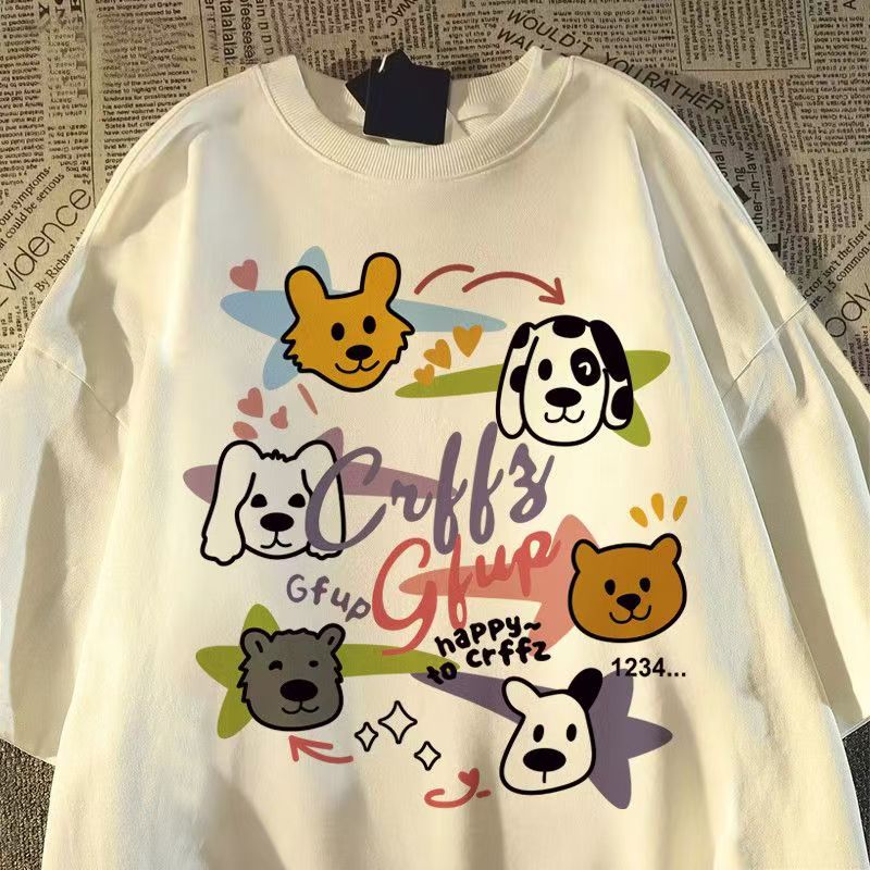 宽松休闲百搭学生上衣 2025年新款 100%纯棉日系卡通短袖 T恤女夏季