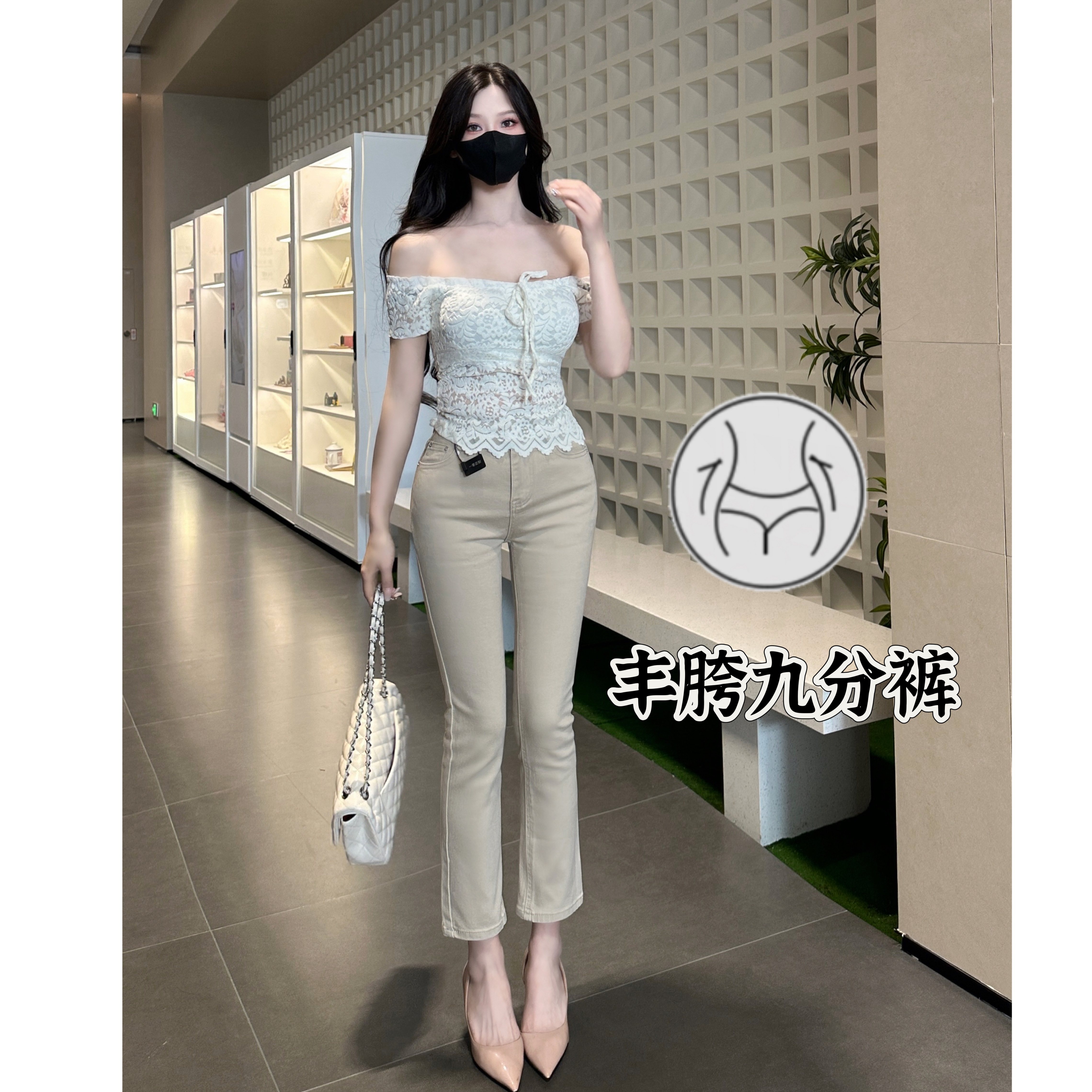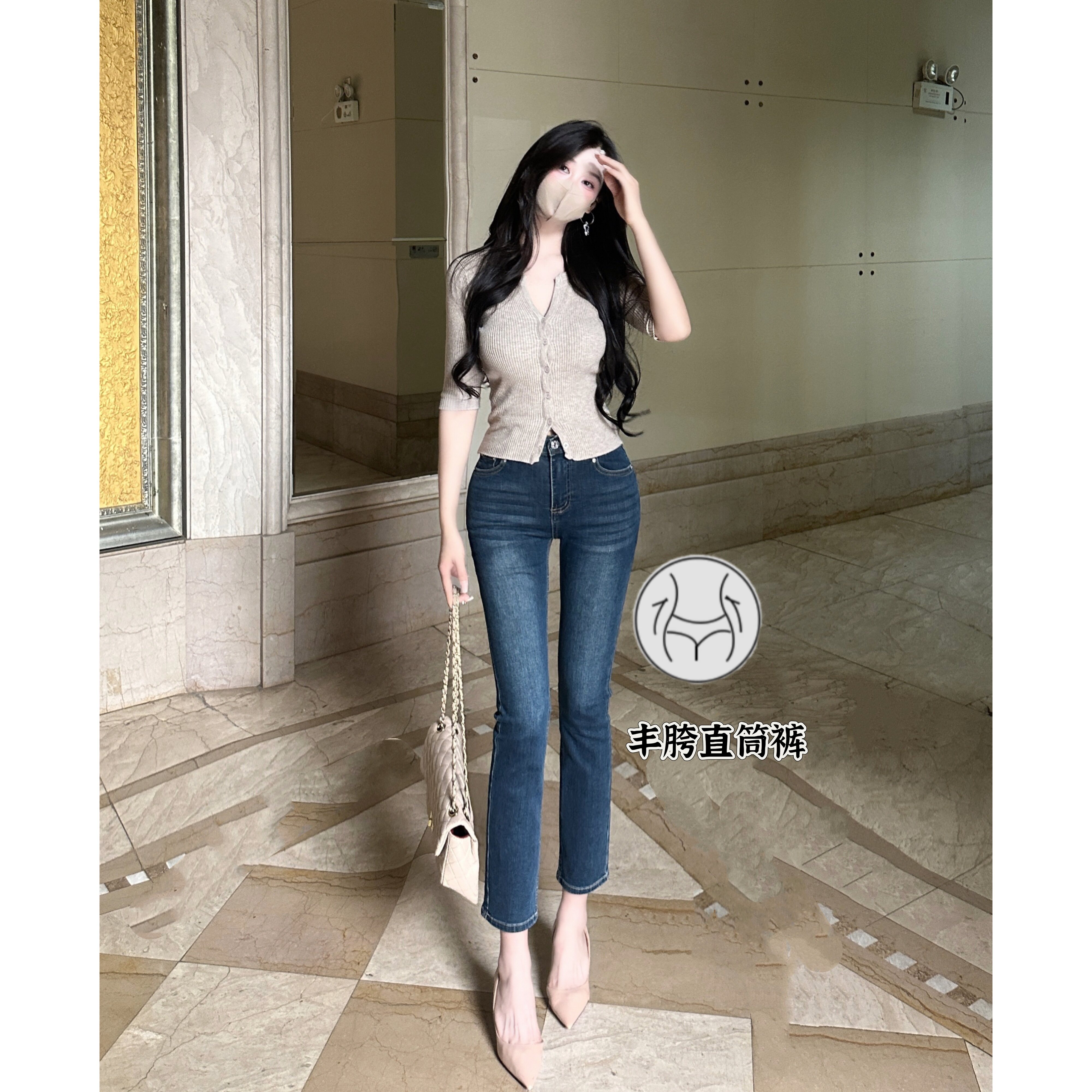 丰胯牛仔裤 百搭显瘦九分烟管裤 御姐丰胯气质卡其色直筒裤 老钱风