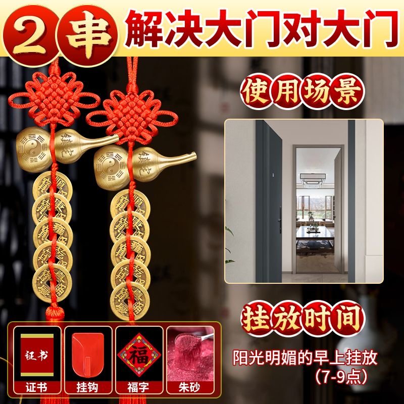 五帝钱葫芦挂件门对门真品朱砂大门卧室窗户铜钱挂门物件黄铜钱串