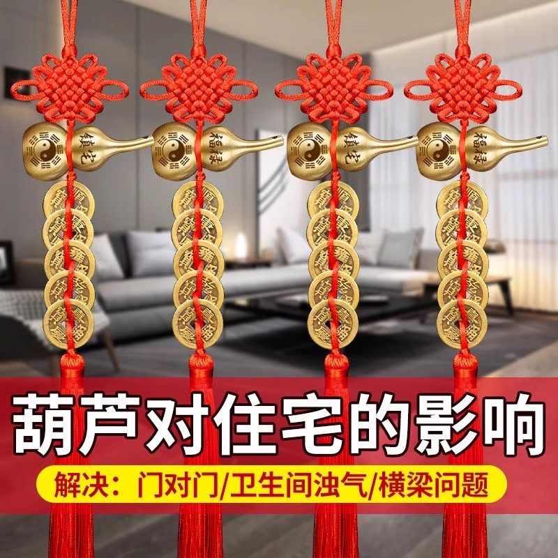 门对门葫芦挂件卧室厕所客厅厨房阳台黄铜五帝钱挂饰天然开口葫芦