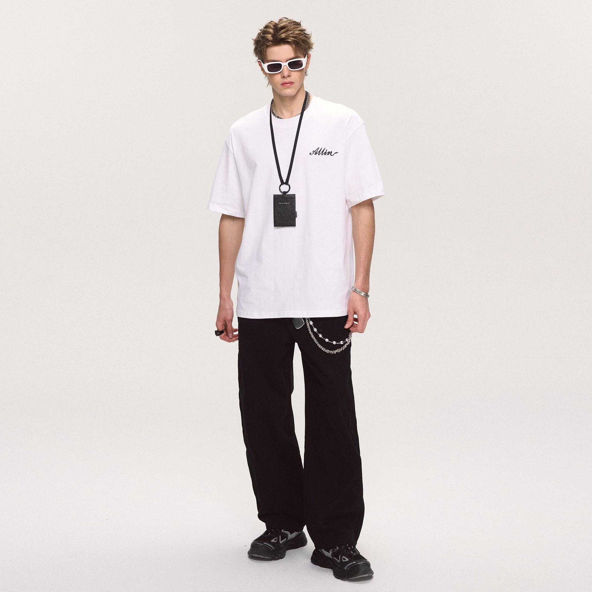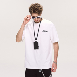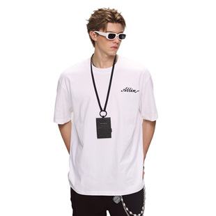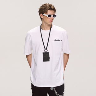潮牌重磅纯棉半袖 t恤男夏季 情侣字母立体印花上衣 白色短袖 ALLIN