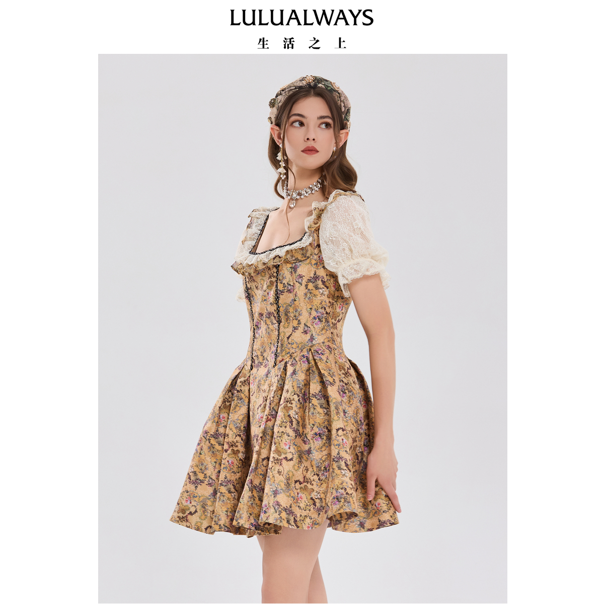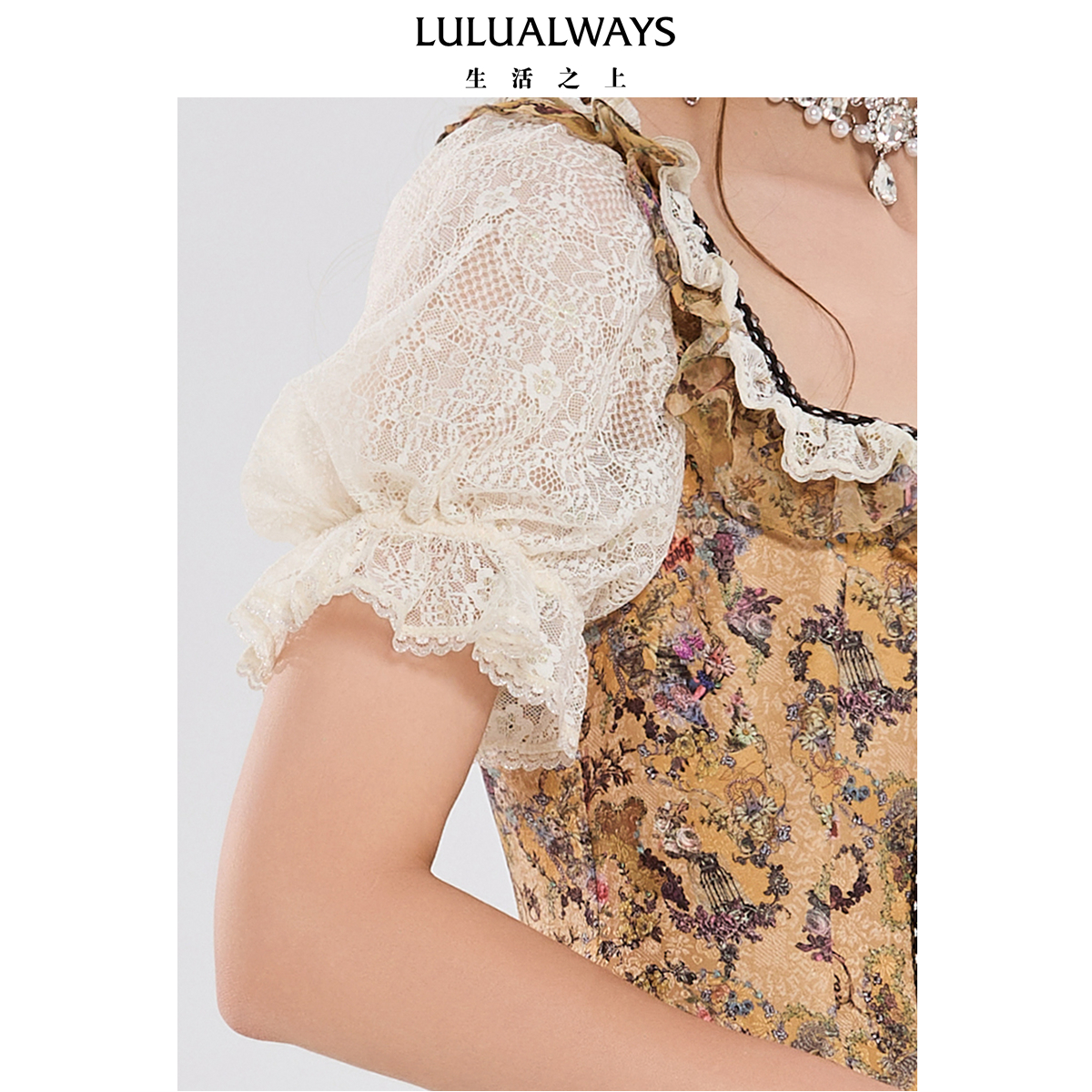 公主连衣裙 复古宫廷摩登蕾丝泡泡袖 LULUALWAYS我爱露露25夏季 新款