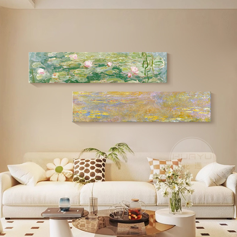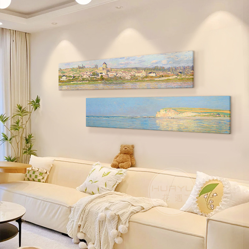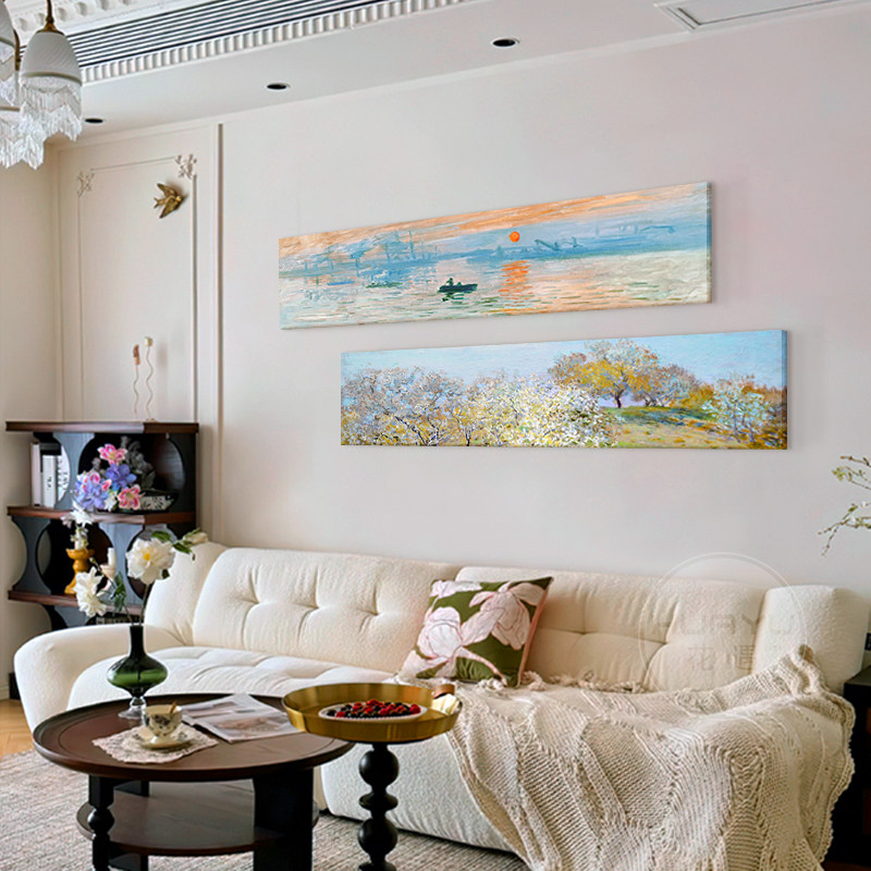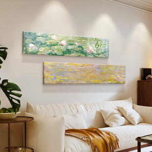 莫奈法式 饰画卧室床头横幅艺术画无框挂画 奶油风客厅沙发背景墙装